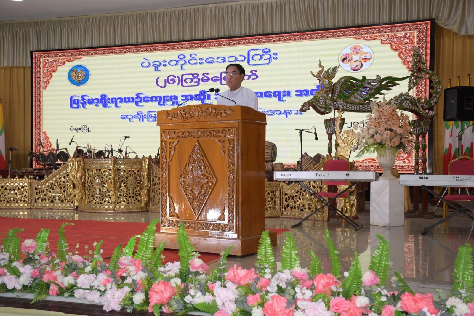 ထို့နောက် ပဲခူးတိုင်းဒေသကြီးအစိုးရအဖွဲ့၊ ဝန်ကြီးချုပ် ဦးမျိုးဆွေဝင်းက နက်နဲသိမ်မွေ့ပြီး အဆင့်အတန်းမြင့်မားသည့် မြန်မာ့ရိုးရာယဉ်ကျေးမှု အနုသုခုမ အဆို၊ အက၊ အရေး၊ အတီးပညာရပ်များအပေါ် မျိုးဆက်သစ်လူငယ်မောင်မယ်များအနေဖြင့် ဂုဏ်ယူမြတ်နိုးတန်ဖိုးထားတတ်စေရန်နှင့် လက်ဆင့်ကမ်းအမွေအဖြစ် ဆက်လက်ထိန်းသိမ်းစောင့်ရှောက်စေရန်အတွက် အားပေးမြှင့်တင်ကျင်းပပေးရခြင်းဖြစ်ကြောင်း၊ အနာဂတ်နိုင်ငံတော်အတွက် ဗလ(၅)တန်နှင့်ပြည့်စုံသော သားကောင်းရတနာ၊ သမီးကောင်းရတနာအဖြစ် ပြုစုပျိုးထောင်ပေးရာတွင် ရိုးရာယဉ်ကျေးမှုအနုသုခုမပညာရပ်များသည် အခြေခံကျသည့်အခန်းကဏ္ဍမှ ပါဝင်လျက်ရှိကြောင်း၊ တိုင်းဒေသကြီးအဆင့်မှ ရွေးချယ်ခံထားရသူများအနေဖြင့် နိုင်ငံတော်အဆင့်ပြိုင်ပွဲတွင် အမှတ်ပေးစံနှုန်းများနှင့်ညီညွတ်အောင် ဝတ်စားဆင်ယင်၊ တီးခတ်သီဆို ကပြယှဉ်ပြိုင်နိုင်မှသာ ထိုက်တန်သည့် ဆုတံဆိပ်များရရှိနိုင်မှာဖြစ်ကြောင်း၊ ပြိုင်ပွဲဝင်များအနေဖြင့် ပဲခူးမြို့၌ စခန်းသွင်းလေ့ကျင့်ရာတွင် ဝါရင့်သမ္ဘာရင့်အနုပညာရှင်များ၊ အနုပညာကို ချစ်မြတ်နိုးတန်ဖိုးထားသူများ၊ ဝါသနာကို အရင်းတည်၍ လက်ဆင့်ကမ်းထိန်းသိမ်းလျက်ရှိသူများ၏ စနစ်တကျသင်ကြားပြသပေးမှုများကို မှတ်သားလိုက်နာ၍ စခန်းဝင်လေ့ကျင့်သည့်အချိန်မှစတင်၍ နိုင်ငံတော်အဆင့် ပြိုင်ပွဲပြီးဆုံးသည်အချိန်ထိ စွမ်းကုန်ကြိုးပမ်းဆောင်ရွက်သွားကြစေလိုကြောင်း ပြောကြားခဲ့သည်။