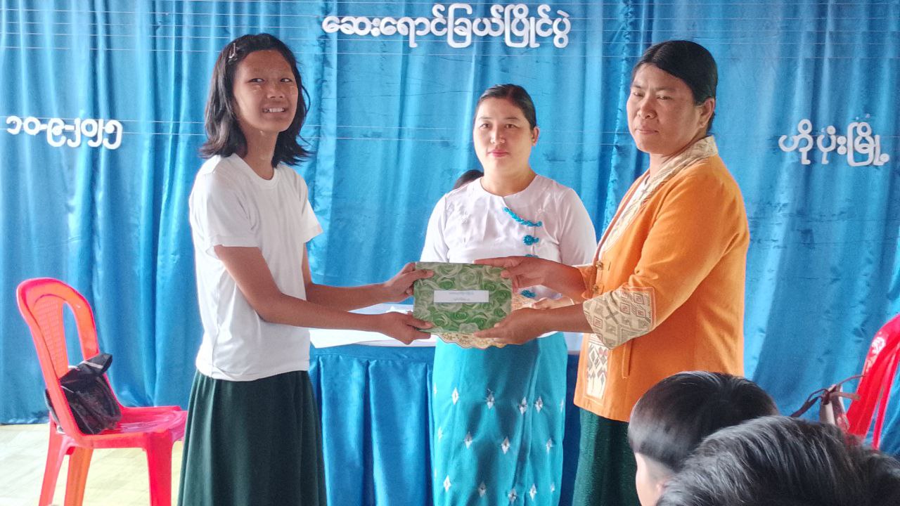 ထို့နောက် အမှတ်(၁)အခြေခံပညာမူလတန်းကျောင်း ကျောင်းသား၊ ကျောင်းသူများက ဆေးရောင်ခြယ်ပြိုင်ပွဲအား ဝင်ရောက်ယှဉ်ပြိုင်ခဲ့ကြသည်။ ဆက်လက်၍ ဆုချီးမြှင့်ခြင်းအခမ်းအနားကို ဆက်လက်ကျင်းပရာ ပြန်ကြားရေးနှင့်ပြည်သူ့ဆက်ဆံရေးဦးစီးဌာန၊ ပအိုဝ်းကိုယ်ပိုင်အုပ်ချုပ်ခွင့်ရဒေသအဆင့်ရုံးမှ လက်ထောက်ညွှန်ကြားရေးမှူး ဒေါ်ဥမ္မာချို၊ အမှတ်(၁)အခြေခံပညာမူလတန်းကျောင်း ကျောင်းအုပ်ဆရာမကြီး ဒေါ်စိမ့်စိမ့်လျှံတို့က ဆေးရောင်ခြယ်ပြိုင်ပွဲတွင် ပထမ၊ ဒုတိယ၊ တတိယနှင့် နှစ်သိမ့်ဆုရရှိသော ကျောင်းသား၊ ကျောင်းသူများအား ဆုများအသီးသီး ပေးအပ်ချီးမြှင့်ခဲ့ကြသည်။