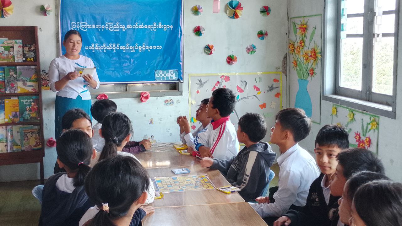ယင်းနောက် ပြန်ကြားရေးနှင့်ပြည်သူ့ဆက်ဆံရေးဦးစီးဌာန ပအိုဝ်းကိုယ်ပိုင်အုပ်ချုပ်ခွင့်ရဒေသအဆင့်ရုံးမှ ဒုတိယဦးစီးမှူး ဒေါ်အေးထက်ထက်ထွန်းက ကလေးစာဖတ်ခန်းတွင် ကျောင်းသား၊ ကျောင်းသူများအား ဉာဏ်စမ်းပဟေဠိ အမေး၊ အဖြေများ ဆောင်ရွက်ပေးခဲ့ပြီး ပြန်ကြားရေးနှင့်ပြည်သူ့ဆက်ဆံရေးဦးစီးဌာနမှ ခင်းကျင်းပြသထားသော အသိပညာပေးနံရံကပ်စာစောင်များနှင့် သုတ၊ ရသစာအုပ်စာစောင်များကို ကျောင်းသား၊ ကျောင်းသူများက စိတ်ပါဝင်စားစွာ လေ့လာဖတ်ရှုခဲ့ကြကြောင်း သိရသည်။