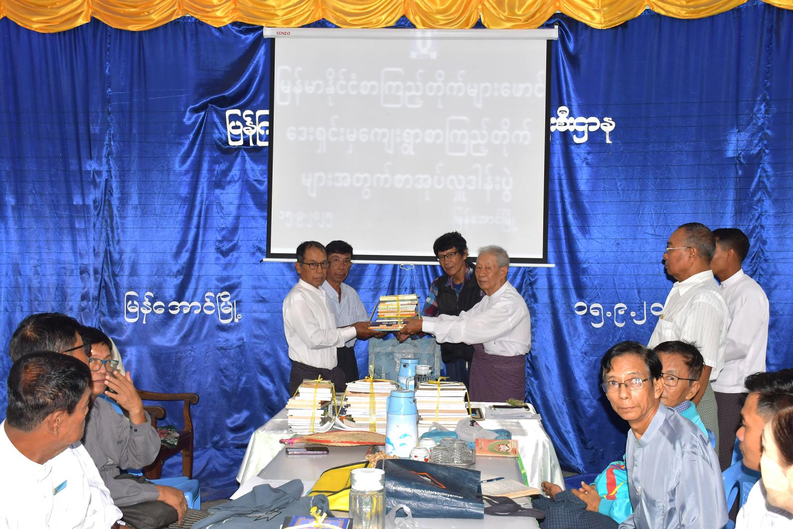 ဆက်လက်၍ မြန်မာနိုင်ငံစာကြည့်တိုက်များ ဖောင်ဒေးရှင်းမှ ပေးပို့လှူဒါန်းသော စာအုပ်များကိုပေးအပ်ရာ သပြေကုန်းကျေးရွာ ပညာရတနာစာကြည့်တိုက်၊ တာခွတဲကြီးကုန်းကျေးရွာ ဘိုးရာဇာ စာကြည့်တိုက်၊ အင်ပင်မြို့ ကြီးပွားရေးစာကြည့်တိုက်၊ မြန်အောင်ရေနံမြေစာကြည့်တိုက်၊ ရွှေပြည်သာရေနံမြေစာကြည့်တိုက်နှင့် ကနောင်မြို့ ကမ္ဘာကြည့်စာကြည့်တိုက်နှင့်ရသအောင်မြေ စာကြည့်တိုက်တို့မှ စာကြည့်တိုက်တာဝန်ခံများအား မြို့နယ်စာရေးဆရာအသင်း နာယက ဦးသန်းညွန့်၊ မြို့နယ်စာကြည့်တိုက်များ ဖောင်ဒေးရှင်းဥက္ကဋ္ဌ ဦးနေဝင်း၊ မြို့နယ်ပြန်/ဆက် ဦးစီးအရာရှိ ဦးဇော်မင်းထွန်းတို့က ပေးအပ်ခဲ့ကြသည်။