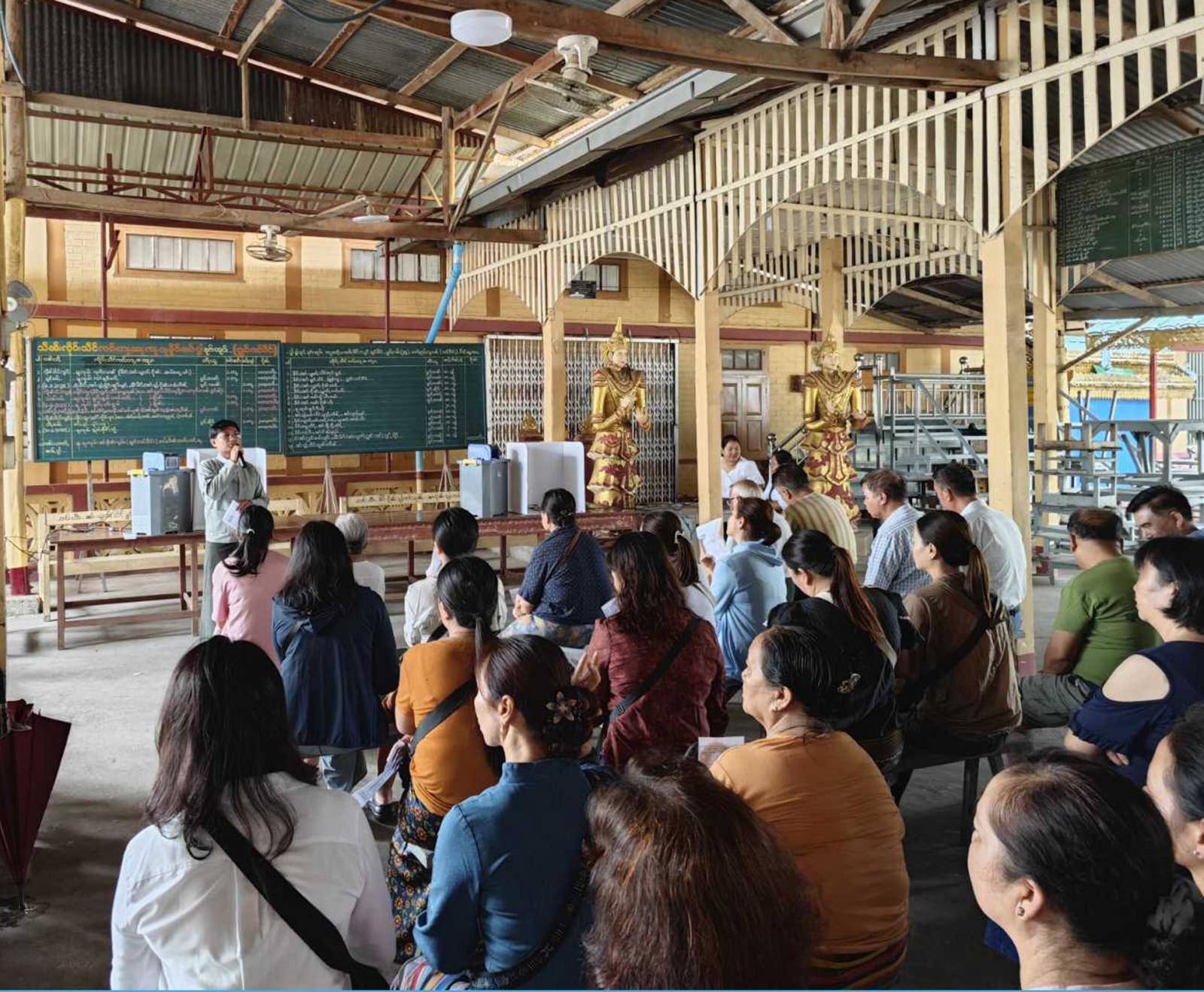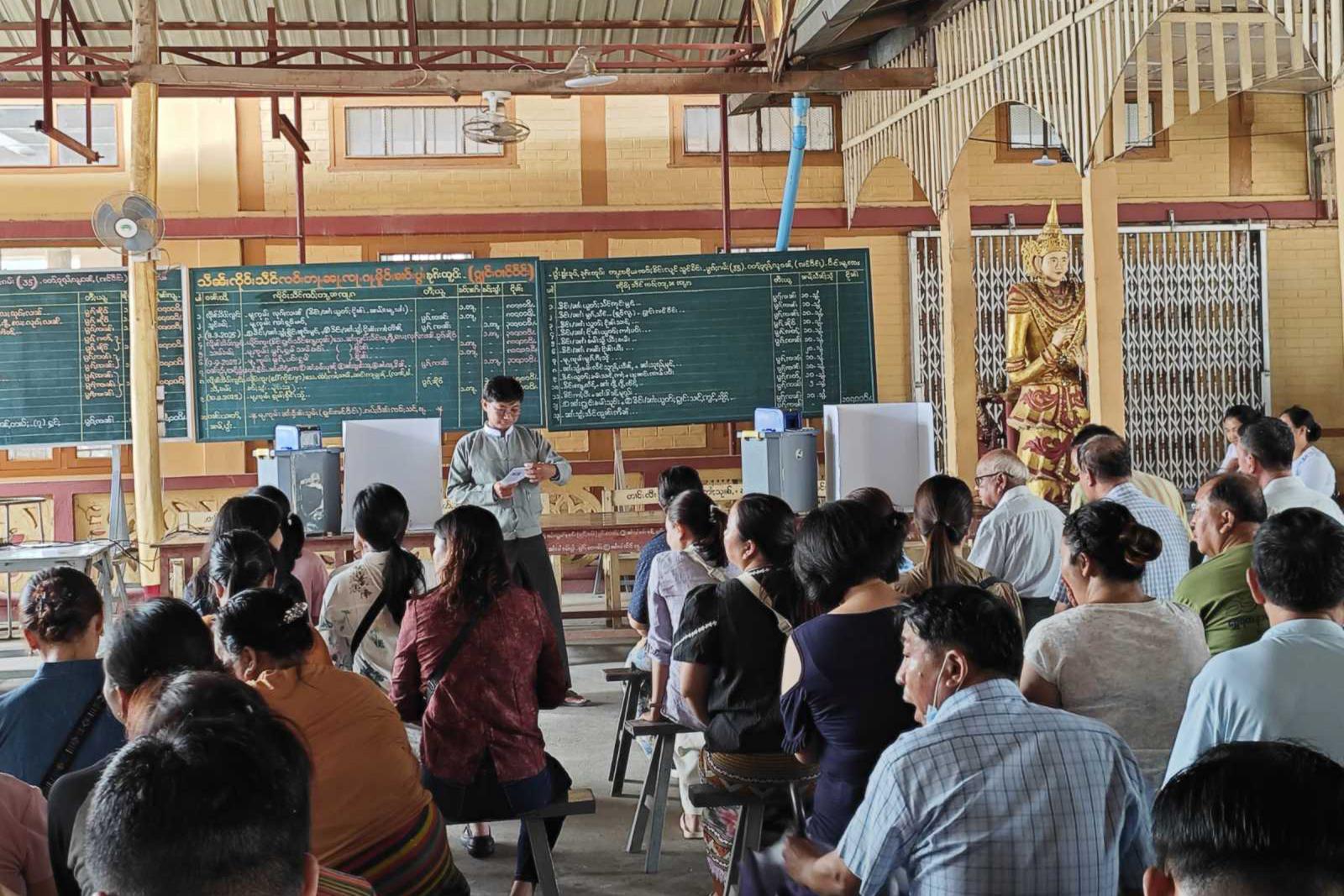 ထိုသို့ ဆောင်ရွက်ရာတွင် မြို့နယ်ရွေးကောက်ပွဲ ကော်မရှင်အဖွဲ့ခွဲ အတွင်းရေးမှူး ဦးဇာနည်မြင့်ထွန်းက မြန်မာ့အီလက်ထရောနစ် မဲပေးစက် (MEVM)နှင့် ပတ်သက်၍ အသေးစိတ်ရှင်းလင်းခဲ့ပြီး မဲဆန္ဒရှင်ပြည်သူများ ကိုယ်တိုင်စနစ်တကျ မဲပေးပုံအဆင့်ဆင့်ကို ရှင်းလင်းခဲ့သည်။ ယင်းနောက် တက်ရောက်လာသော မဲဆန္ဒရှင်ပြည်သူများက လွှတ်တော် အသီးသီးတွင် ကိုယ်တိုင်မဲပေးခြင်းကို လက်တွေ့ဆောင်ရွက်ခဲ့ကြသည်။