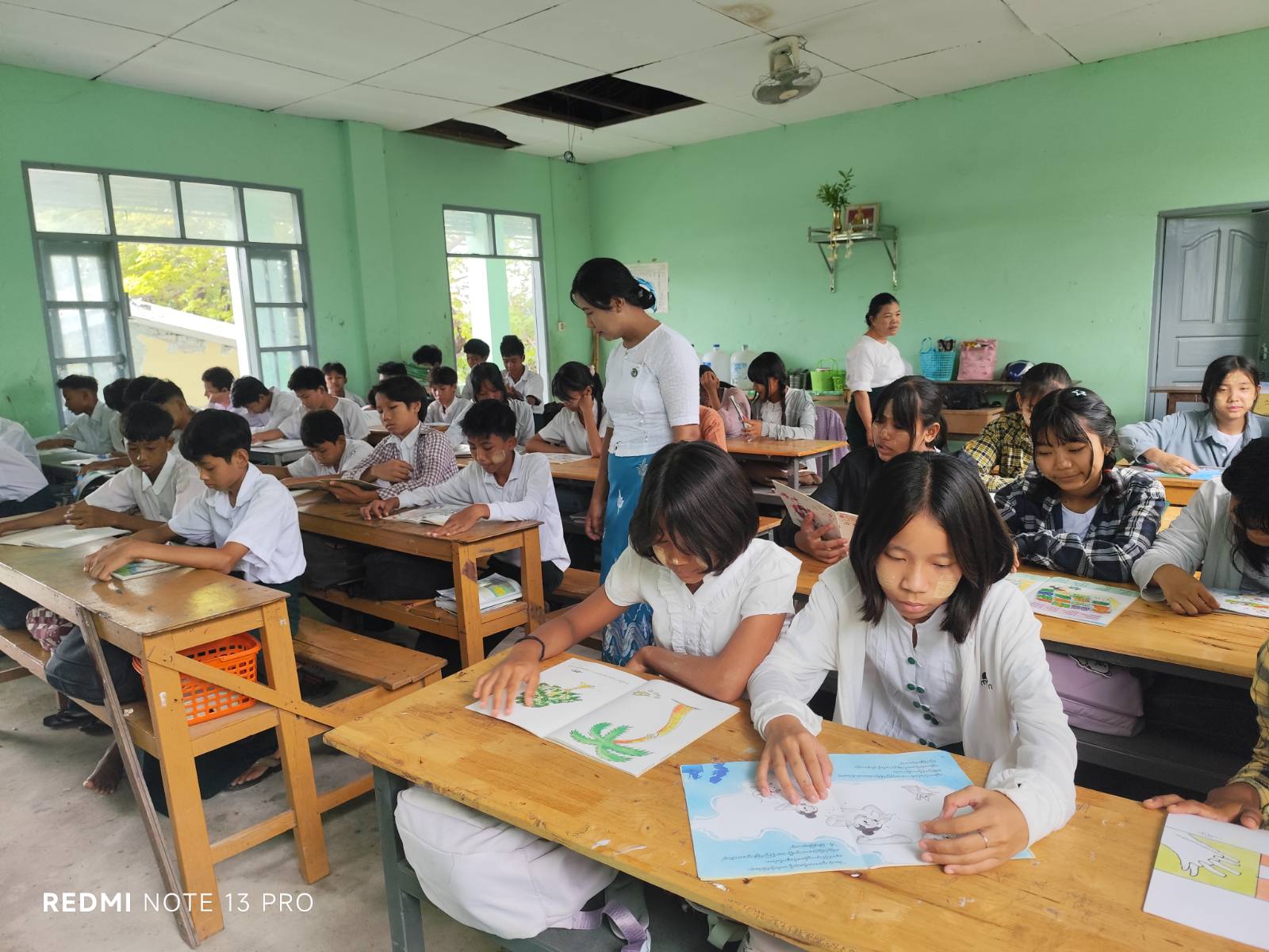 အခမ်းအနားတွင် ပြန်ကြားရေးနှင့်ပြည်သူ့ဆက်ဆံရေးဦးစီးဌာန၊ မြို့နယ်ဦးစီးမှူး ဒေါ်ခင်စိမ်းဝင်းနှင့် ဒုတိယဦးစီးမှူး ဒေါ်မြင့်ကေသွယ်ခိုင်တို့က ကျောင်းသား၊ ကျောင်းသူများအနေဖြင့် ကျောင်းစာကြည့်တိုက်များကို အသုံးပြုတတ်စေရေး၊ စာပေလေ့လာဖတ်ရှုသည့် အလေ့ အကျင့်ကောင်းများ ဖြစ်ပေါ်လာစေရေးနှင့် စာပေ၏ အကျိုးကျေးဇူးများအကြောင်း၊ ကလေးအလုပ်သမားပပျောက်စေရေးနှင့် လူကုန်ကူးမှုအန္တရာယ်၊ မူးယစ်ဆေးဝါးဆိုးကျိုးများ စသည်တို့ကို အသိပညာပေး ဟောပြောခဲ့ပြီး ကျောင်းသား၊ ကျောင်းသူများ အသိပညာဗဟုသုတ ရရှိစေရန်အတွက် အသိပညာပေးနံရံကပ်စာစောင်၊ စာအုပ်စာစောင်များပြသပေးခြင်းနှင့်အတူ သုတ/ရသ စာအုပ် (၁၂၄) အုပ်ကို အခမဲ့ငှားရမ်းပေးခဲ့ကြောင်း သိရသည်။