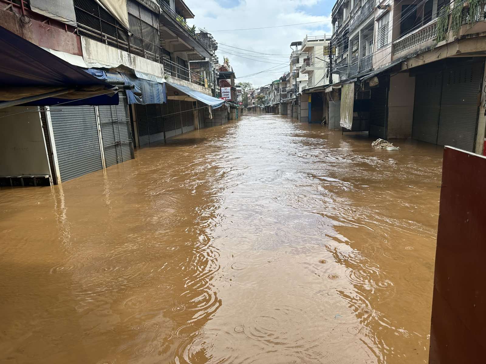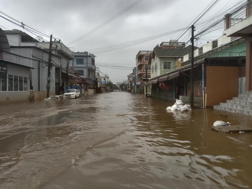 ရှမ်းပြည်နယ်(အရှေ့ပိုင်း)၊ တာချီလိတ်မြို့၌ မိုးများသည်းထန်စွာရွာသွန်ခြင်းနှင့် တောင်ကျရေများစီးဆင်းကာ မယ်ဆိုင်ချောင်းရေ မြင့်တက်လာခြင်းကြောင့် ယနေ့နံနက်ပိုင်းစ၍ ဗိုလ်ချုပ်လမ်းမကြီးအပါအဝင် အနိမ့်ပိုင်းရပ်ကွက်များတွင် ရေကြီးရေလျှံမှုဖြစ်ပွားလျက်ရှိသည်။