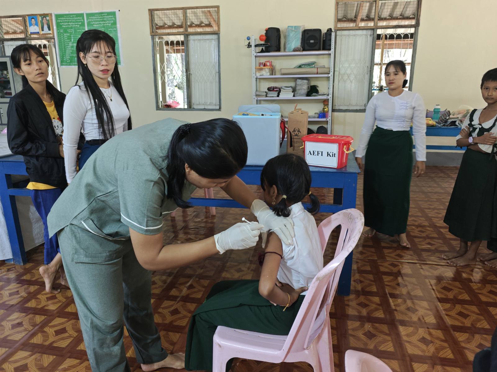 အဆိုပါ ကာကွယ်ဆေးထိုးနှံပေးခြင်းဆောင်ရွက်နေမှုကို ကျေးလက်ကျန်းမာရေးဌာနခွဲ ဘက်စုံသားဖွားဆရာမ ဒေါ်ခိုင်ယမင်းပွင့်က အသက် (၅) နှစ်ပြည့်ပြီး (၇) နှစ်မကျော်သော (KG) ကျောင်းသား၊ ကျောင်းသူ (၃၁) ဦးကို ကျောင်းအခြေပြု DT ကာကွယ်ဆေးထိုးနှံပေးခဲ့ပြီး အသက် (၉) နှစ်အထက် ကျောင်းသူ (၂၄) ဦးအား HPV ကာကွယ်ဆေး ဆက်လက်ထိုးနှံပေးခဲ့ကြောင်း သိရသည်။