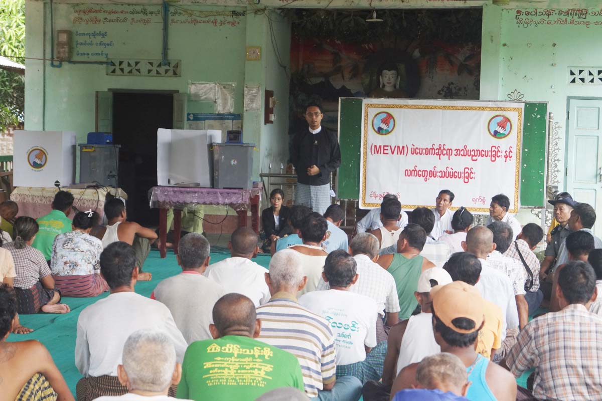မန္တလေးတိုင်းဒေသကြီး ငါန်းဇွန်မြို့၊ အမှတ် (၂) ရပ်ကွက်ရှိ ရှင်ပင်ချမ်းသာကြီးဘုရားဝင်းအတွင်းရှိ အေးငြိမ်းချမ်းသာဓမ္မာရုံ၌ စက်တင်ဘာ ၂၆ရက်နေ့ မွန်းလွဲ ၁ နာရီက ရပ်ကွက်နေပြည်သူများအား မြန်မာအီလက်ထရောနစ်မဲပေးစက်ဆိုင်ရာ အသိပညာပေးခြင်းနှင့် လက်တွေ့စမ်းသပ်မဲပေးခြင်း ပြုလုပ်ကြောင်း သိရသည်။