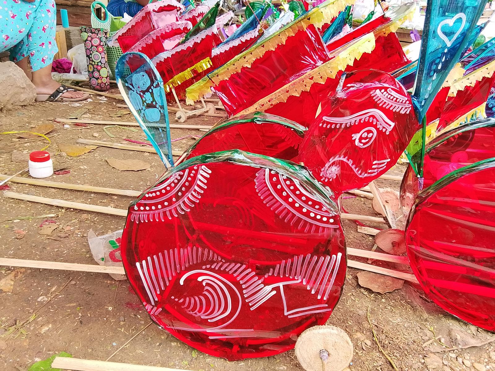 ထို့အတူ သီတင်းကျွတ်မီးပုံးနှင့် ကလေးကစားစရာအရုပ်များ ပြုလုပ်ရောင်းချရာတွင် မီးပုံးအမျိုးမျိုးအကြီးအငယ်ပေါ်မူတည်၍ ၅၀၀ ကျပ်မှ ၁၀၀၀ကျပ်၊ ၂၅၀၀ကျပ်နှင့် အမျိုးမျိုးရောင်းချကြရသည်။ မီးပုံးလေးများနှင့် ယုန်ရုပ် ၁၅၀၀ကျပ်၊ ကြက်ရုပ်၃၅၀၀ကျပ်၊ ဆင်ရုပ်၅၀၀၀၊ ဒေါင်းရုပ်၅၀၀၀+၆၀၀၀ကျပ်၊ ဇီးကွက်ရုပ်၃၅၀၀ကျပ်၊ လေယာဥ်ရုပ်၅၀၀၀+၆၀၀၀ကျပ်ကြားပန်း၂၅၀၀ကျပ်နှင့် ကလေးကစားစရာအရုပ်မျိုးစုံအကြီး၊ အသေး၊ အလတ်အမျိုးအစားအလိုက် စျေးအမျိုးမျိုးရောင်းချကြရကြောင်း သီတင်းကျွတ်မီးပုံးနှင့် ကလေးကစားစရာအရုပ်များကို ဖန်တီးပြုလုပ်ရန်အတွက် သီတင်းကျွတ်မတိုင်ခင် တစ်လခွဲလောက်ကြိုတင်စိပ်ခွဲ၍ နှီးအဖြစ်ဖြာကာ ကလေးကစားစရာအရုပ်၊ အမျိုးမျိုးကို ကြိုတင်ပြုလုပ်၍ မှန်ရောင်စက္ကူနှင့် ဆီစိမ်စက္ကူစာရွက်များ၊ မှန်ရောင်စက္ကူများကို ကြိုတင်၍ ဝယ်ယူစုဆောင်း ထားရှိပြီးရသည်။ ထိုသို့ပြု လုပ်ဆောင်ရွက်ရာ၌၊ အရင်းအနှီးအနေဖြင့် ငါးသိန်းအထက်တွင်ရှိပြီး၊ ကုန်ပစ္စည်းသိုလှောင်မှုပေါ်မူတည်၍ ကုန်ကျကြောင်း ယခုနှစ်တွင်ယခင်နှစ်များနည်းတူ အရုပ်ရောင်းချရာ၌ ရောင်းအားနည်းကြောင်း မြို့နယ်နမိတ်ခြင်းထိစပ်သည့် မြို့များ၊ မြို့နယ်အတွင်းရှိ ကျေးရွာများမှ ဖောက်သည်ယူရောင်းချကြကြောင်းဖြင့် သီတင်းကျွတ်အခါမတိုင်မီ တစ်ရက်ပျမ်းမျှစျေး၌ ထိုင်ရောင်းပါက သုံးသောင်း၊ လေးသောင်းဖို့ခန့်ရောင်းချရကြောင်း မြန်မာ့ရိုးရာလက်မှုပညာအမွေအနှစ်လုပ်ငန်း မီးပုံးနှင့်အရုပ်မျိုးမျိုးပြုလုပ်ရောင်းချသူ အနည်းငယ်သာရှိ၍ ယခုနှစ်မီးပုံးနှင့် ကလေးကစားစရာရောင်စုံမီးထွန်းအရုပ်များ ပြုလုပ်သူ ရောင်းချသူများထံမှ သိရသည်။