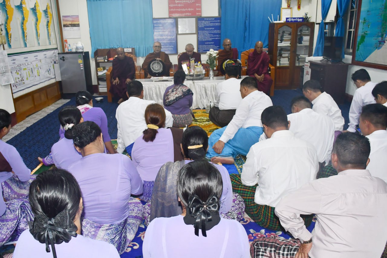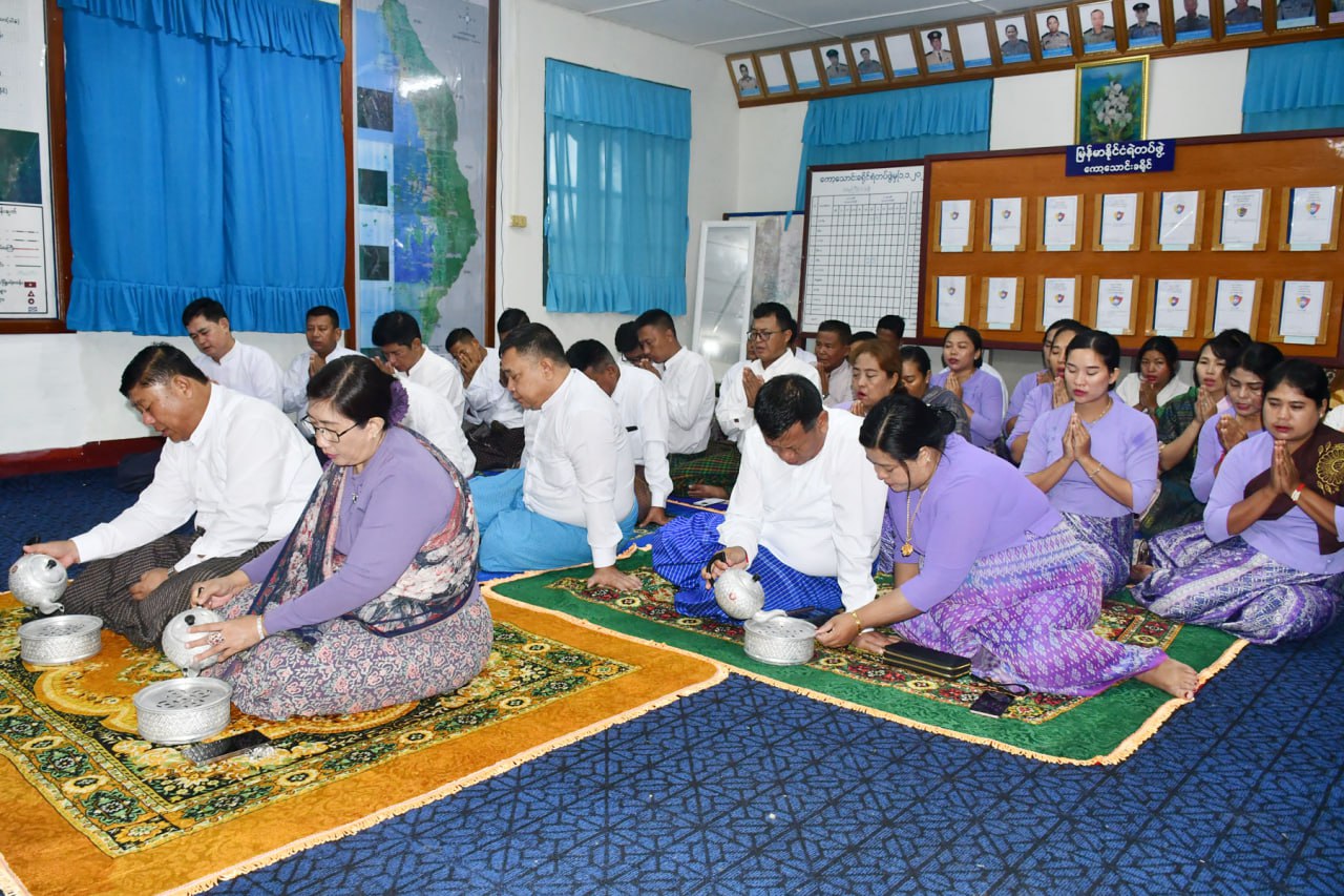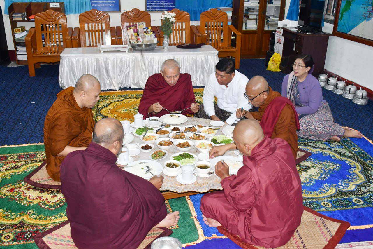 သရဏဂုံနှင့်ငါးပါးသီလ ခံယူစောင့်တည်ခဲ့ကြသည်။ ယင်းနောက်ဆရာတော်သံဃာတော် အရှင်သူမြတ်များက အန္တရာယ်ကင်းပရိတ်တရားတော် ရွတ်ဖတ်ပူဇော်၍ကော့သောင်းခရိုင် ရဲတပ်ဖွဲ့မှူးနှင့်တပ်ဖွဲ့ဝင်များက ဆရာတော်သံဃာတော်များအား လှူဖွယ်ဝတ္ထု၊ ပစ္စည်းများ ဆက်ကပ်ခဲ့ကြသည်။ ယင်းနောက် ရွှေပြည်သာကျောင်းတိုက်ဆရာတော်မှ အနုမောဒနာတရားချီးမြှင့်၍ လှူဒါန်းမှုအစုစုအတွက် ရေစက် သွန်းချ အမျှပေးဝေခဲ့ကြသည်။ ထို့နောက် ဆရာတော်သံဃာတော်အရှင်သူမြတ်များအား အရုဏ်ဆွမ်းဆက်ကပ်လှူဒါန်းခဲ့ကြကြောင်း သိရသည်။