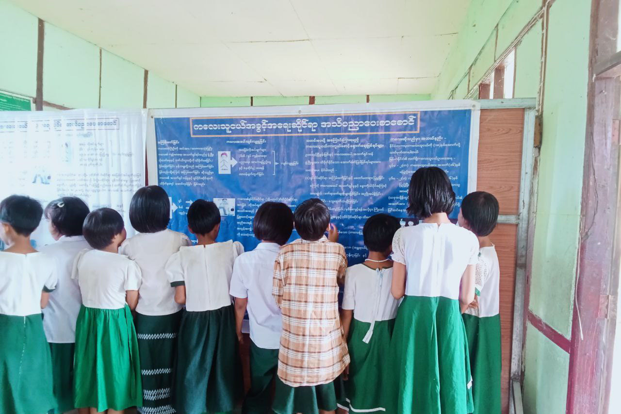 ထိုသို့ ကွင်းဆင်းဆောင်ရွက်ရာတွင် မြို့နယ်ပြန်ကြားရေးနှင့်ပြည်သူ့ဆက်ဆံရေးဦးစီးဌာန၊ မြို့နယ်ဦးစီးအရာရှိ ဒေါ်ဝင်းအိဇွန်က ကျောင်းသား ကျောင်းသူများအား စာအုပ် စာစောင်များလာရောက် ငှားရမ်းဖတ်ရှုကြရန်အတွက် အသိပညာပေးဟောပြောပြီး စာအုပ် စာစောင်များနှင့် ကလေးသူငယ် အခွင့်အရေးဆိုင်ရာ နံရံကပ်စာစောင်များပြသရာ ကျောင်းသား ကျောင်းသူများက စိတ်ပါဝင်စားစွာ လေ့လာဖတ်ရှုခဲ့ကြောင်း သိရသည်။
