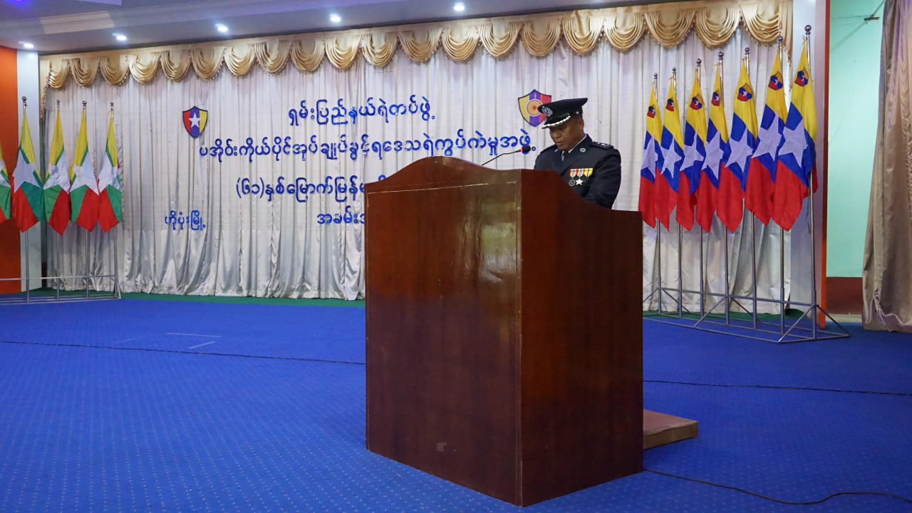 ထို့နောက် ပအိုဝ်းကိုယ်ပိုင်အုပ်ချုပ်ခွင့်ရဒေသ ရဲကွပ်ကဲမှုအဖွဲ့မှူးရုံးမှ ဒုတိယရဲမှူးကြီး သန်းဌေးအောင်က မြန်မာနိုင်ငံရဲတပ်ဖွဲ့ ရဲချုပ်ထံမှ ပေးပို့သည့် သဝဏ်လွှာအား ဖတ်ကြားသည်။