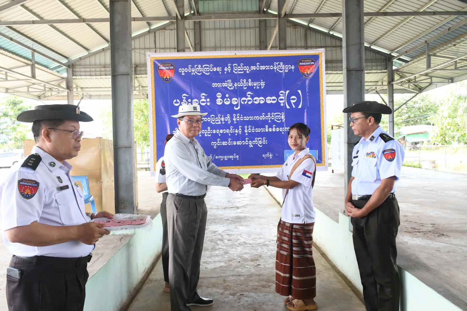 ပြည်နယ်ဝန်ကြီးချုပ်နှင့်အဖွဲ့သည် ယာယီနေရပ်စွန့်ခွာပြည်သူများက မိမိတို့ရောက်ရှိရာအရပ်တွင် ဆန္ဒမဲပေးနိုင်ရေး မဲစာရင်းတွင်ထည့်သွင်းပေးပါရန် ပုံစံ(၃-က)ဖြင့် လျှောက်လွှာရေးသွင်း တောင်းဆိုမှု၊ နိုင်ငံသားစိစစ်ရေးကတ်ပြားနှင့် UID စမတ်ကတ်များဆောင်ရွက်ပေးနေမှုများကို ကြည့်ရှုအားပေးပြီး ပြည်နယ်ဝန်ကြီးချုပ်နှင့်တာဝန်ရှိသူများက နိုင်ငံသားစိစစ်ရေးကတ်များကို လက်ဝယ်အရောက်ပေးအပ်ချီးမြှင့်ခဲ့ကြသည်။