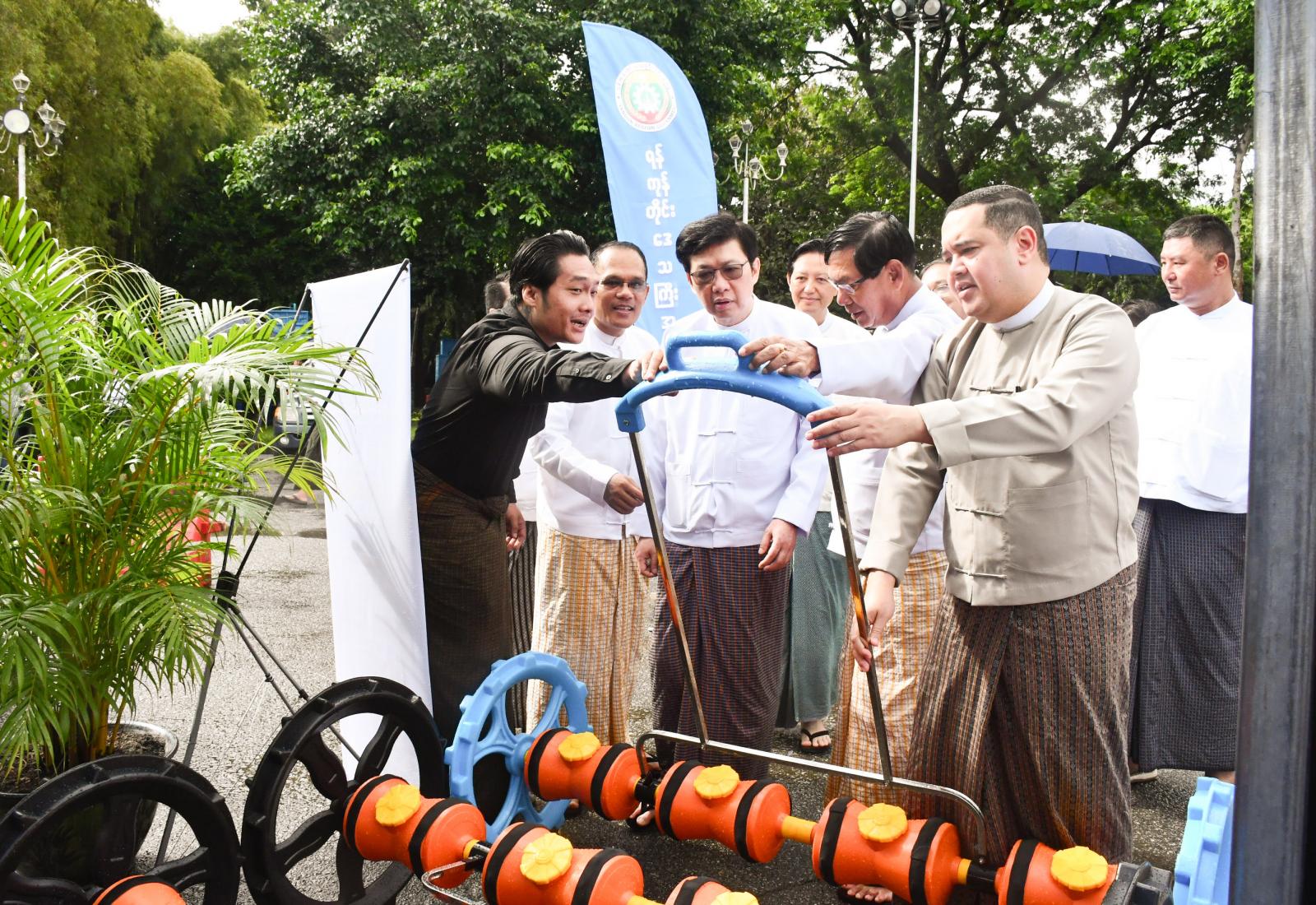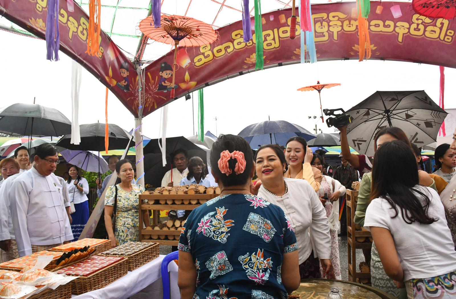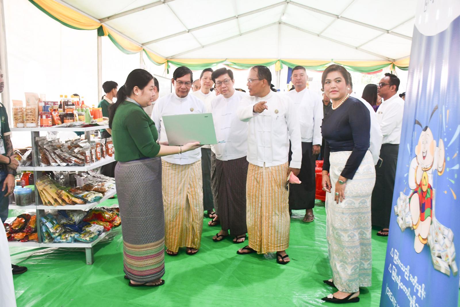 ယင်းနောက် ရန်ကုန်တိုင်းဒေသကြီး ဝန်ကြီးချုပ် ဦးစိုးသိန်းနှင့် တာဝန်ရှိသူများက ဈေးဆိုင်ခန်းများ မြန်မာ့ရိုးရာယဥ်ကျေးမှု သနပ်ခါးလိမ်းခြယ်မှုပြခန်းနှင့် ရန်ကုန်တိုင်းဒေသကြီးအစိုးရအဖွဲ့တိုက်ရိုက် စေ့ချကိရိယာ(Drum Seeder) စက် ကိရိယာများအား လှည့်လည်ကြည့်ရှုအားပေးကြသည်။