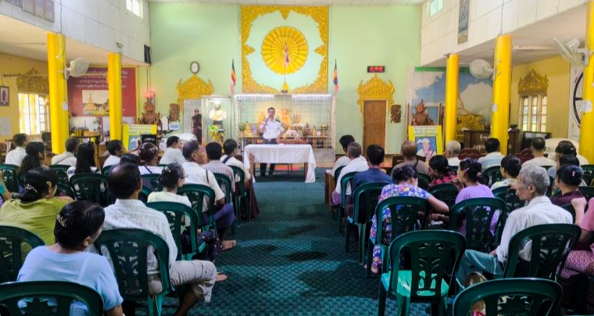 ဧရာဝတီတိုင်းဒေသကြီး၊ ကျုံပျော်ခရိုင်၊ ရေကြည်မြို့နယ်အသုတ်မြို့၊ ဆင်မင်းစံဓမ္မရိပ်သာတွင် အသုတ်မြို့သို့ပြောင်းရွှေ့လာသည့် ဒေသတွင်း ယာယီနေရပ်စွန့်ခွာပြည်သူများအား ၂၀၂၅ ခုနှစ်၊ ပါတီစုံဒီမိုကရေစီအထွေထွေရွေးကောက်ပွဲဆိုင်ရာကိစ္စရပ်များအား ရှင်းလင်းပြောကြားခြင်း အခမ်းအနားကို ယနေ့နံနက်(၁၀)နာရီအချိန်က ပြုလုပ်ခဲ့ရာ စုစုပေါင်း ယာယီနေရပ်စွန့်ခွာပြည်သူ (၃၅၀) ဦးခန့် တက်ရောက်ခဲ့ကြောင်း သိရသည်။