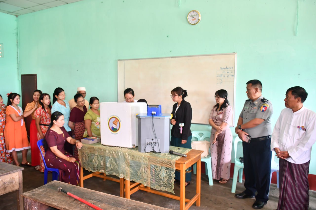 ထို့နောက် တက်ရောက်လာကြသည့် အသက်(၁၈)နှစ်ပြည့်ပြီး ဒေသခံပြည်သူများအား မြန်မာအီလက်ထရောနစ်(MEVM)မဲပေးစက်အသုံးပြု၍ လက်တွေ့စမ်းသပ်မဲပေးခြင်း၊ မဲပေးစက်မှ ထုတ်ပေးသည့် မဲရလဒ်စာရွက်နှင့် မဲပုံးအတွင်းရှိ မဲလက်မှတ်များကို တိုက်ဆိုင်စစ်ဆေး၍ မဲရလဒ် မှန်၊ မမှန် စိစစ်ခြင်းစသည့် မဲပေးပုံအဆင့်ဆင့်ကို ပြည်သူများ ကျယ်ကျယ်ပြန့်ပြန့် သိရှိနိုင်စေရန် လက်တွေ့သရုပ်ပြ ဆောင်ရွက်ခဲ့ကြောင်း သိရသည်။