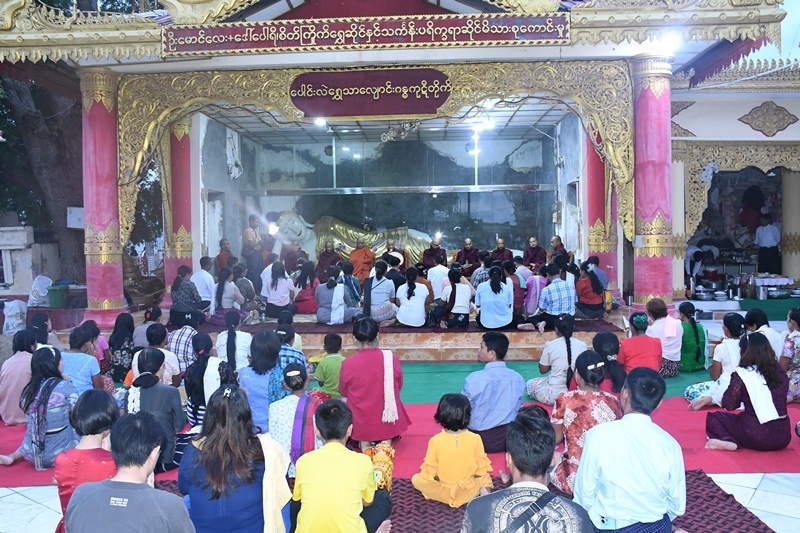 ထို့နောက် ရွှေသာလျောင်း၊ လေးမျက်နှာ၊ ရွှေမုဌောဘုရားများ၏ ဦးစီးနာယကပဓာနဩဝါဒ စရိယဆရာတော်ဘဒ္ဒန္တဦးစက္ကိန္ဒာဘီဓဇအမှူးပြုသော ပင့်သံဃာဆရာတော်များက အန္တရာယ်ကင်းပရိတ်တရားများ ရွတ်ဖတ်ပူဇော်ခဲ့ပြီး လှူဒါန်းမှုအစုစုအတွက် ရေစက်သွန်းချအမျှပေးဝေခဲ့ကြောင်း သိရှိရသည်။