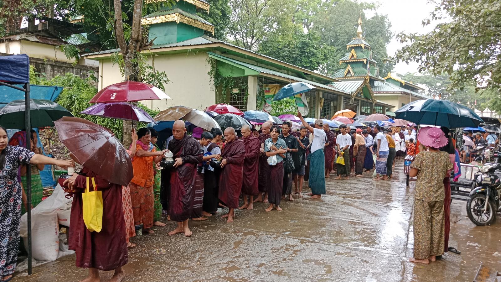 ခရိုင်အထွေထွေအုပ်ချုပ်ရေးဦးစီးဌာနနှင့် ရွှေဆံတော်ဂေါပကအဖွဲ့တို့မှကြီးမှူး၍ မြို့နယ်အတွင်းရှိ အရုဏ်ဆွမ်းကြွသော ဘုန်းတော်ကြီးကျောင်း (၈၂)ကျောင်းမှ သံဃာ့တော် အရှင်သူမြတ်အပါး(၇၉၉)ပါးတို့အား တွံတေးခရိုင်၊ ခရိုင်စီမံခန့်ခွဲရေးနှင့်အုပ်ချုပ်ရေး ကော်မတီအဖွဲ့ဝင်များ၊ မြို့နယ်စီမံခန့်ခွဲရေးနှင့်အုပ်ချုပ်ရေးကော်မတီ အဖွဲ့ဝင်များ၊ ဌာနဆိုင်ရာများ၊ ခရိုင်အမျိုးသမီးရေးရာအဖွဲ့၊ ခရိုင်မိခင်နှင့်ကလေး၊မြို့နယ်အမျိုးသမီးရေးရာ၊ မိခင်နှင့်ကလေး စောင့်ရှောက်ရေးအသင်းအဖွဲ့များ၊ မြို့ပေါ်(၈)ရပ်ကွက်နှင့်ကျေးရွာများမှ စေတနာရှင် ပြည်သူများက ဆွမ်းဆန်စိမ်းလောင်းလှူခြင်းဖြင့် သီတင်းကျွတ်လပြည့်နေ့တွင် ကုသိုလ်ဒါနပြုကြသူများ၊ဘုရားဖူးပြည်သူများဖြင့် စည်းကားလျက်ရှိကြောင်းသိရှိရသည်။