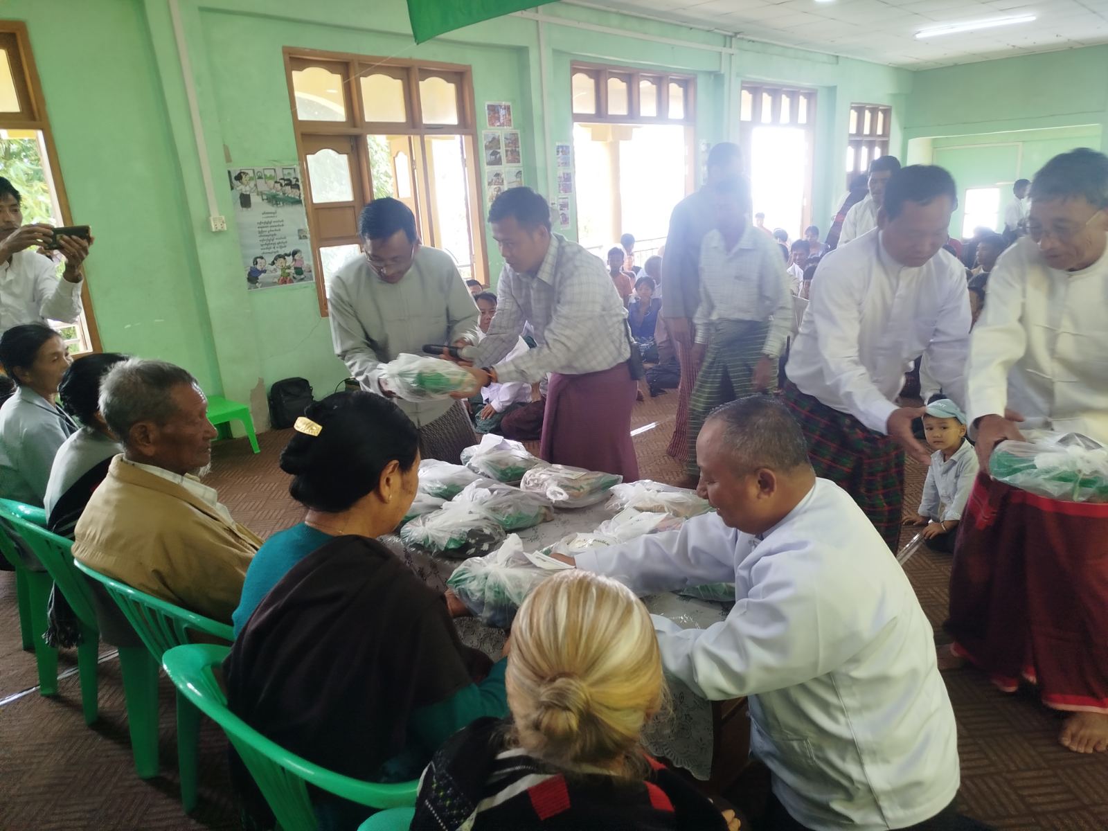 အခမ်းအနားပထမပိုင်းအဖြစ် သံဃာ့ပူဇာပွဲကိုပြုလုပ်ရာ ရှေးဦးစွာအခမ်းအနားသို့ကြွရောက်လာကြသောလေရှီးမြို့ ဗဟိုသာသနာပြုခေါင်းဆောင်ဆရာတော် အမှူးပြုသောပင့်သံဃာ (၆) ပါးနှင့်သီလရှင်များ၊ မြို့နယ်အဆင့်ဌာနဆိုင်ရာအကြီးအကဲများနှင့်ဝန်ထမ်းများနှင့် ဘာသာဝင်များက နမောတဿ(၃)ကြိမ် ရွက်ဆိုဘုရားကန်တော့၍ အခမ်းအနားဖွင့်လှစ်ခဲ့ပြီး လေရှီးမြို့၊ ထေရဝါဒဗုဒ္ဓသာသနာပြု(ဗဟို)ခေါင်းဆောင်ဆရာတော် အဂ္ဂမဟာသဒ္ဓမ္မဇောတိကဓဇ ဘဒ္ဒန္တသုဒဿနအရှင်သူမြတ်ထံမှ (၈)ပါးသီလခံယူဆောက်တည်ခဲ့ကြသည်။ ထို့နောက် သံဃာတော်အရှင်သူမြတ်တို့ ရွက်ဖတ်သရဇ္ဇျာယ်အပ်သော မေတ္တာသုတ်ပရိတ်တရားတော်များနာယူကြည်ညိုပြီး သံဃာ့ပူဇာ ဝတ္ထုငွေ (၄၇၇၇၀၀၀)ကျပ်နှင့်လှူဖွယ်ပစ္စည်းများ ဆက်ကပ်လှူဒါန်းခဲ့ကြသည်။ ဆက်လက်၍ လေရှီးမြို့၊ ထေရဝါဒဗုဒ္ဓသာသနာပြု(ဗဟို)လက်ထောက်ဆရာတော် သာသနာ့တက္ကသီလ ဓမ္မာစရိယ ဘဒ္ဒန္တအဂ္ဂဓဇ အရှင်သူမြတ်ဟောကြားအပ်သော "လူသားနှင့်ကောင်းခြင်းလေးဖြာ" အနုမောဒနာတရားနာယူ၍ လှူဒါန်းမှုအစုစုတို့အတွက်ရေစက်သွန်းချအမျှပေးဝေခဲ့ကြသည်။