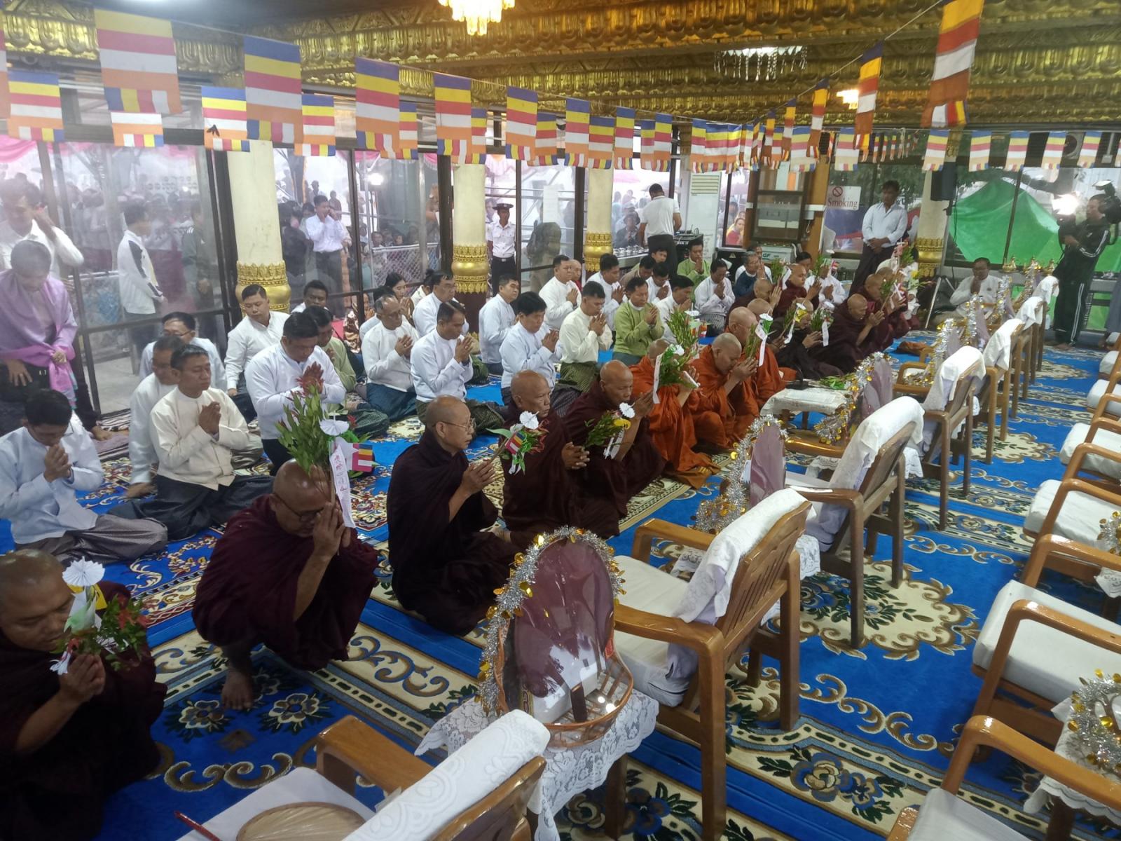 ယင်းနောက် ဗုဒ္ဓပူဇနိယပွဲတော်ဖွင့်ပွဲ မင်္ဂလာ ကို နမောတဿသုံးကြိမ်ရွတ်ဆို ပူဇော်ဖွင့်လှစ်ပြီး ဆရာတော်ကြီးထံမှ (၉)ပါးသီလခံယူ ဆောက်တည်၍ ဆရာတော်ကြီးများကမေတ္တသုတ် ပရိတ်တရားတော်များရွတ်ပွားသရဇ္ဈယ် ချီးမြှင့်ပေးကာ ဩဝါဒါစရိယ ဆရာတော်ကြီးများထံ မွန်ပြည်နယ် လမ်းပန်းဆက်သွယ်ရေးဝန်ကြီးဌာနဝန်ကြီး ဦးတင်စန်းနိုင်မှ သာသနာရေးဆိုင်ရာများ လျှောက်ထားပြီး၊လှူဖွယ်ဝတ္ထု ပစ္စည်းများ ဆက်ကပ်လှူဒါန်းသည်။
