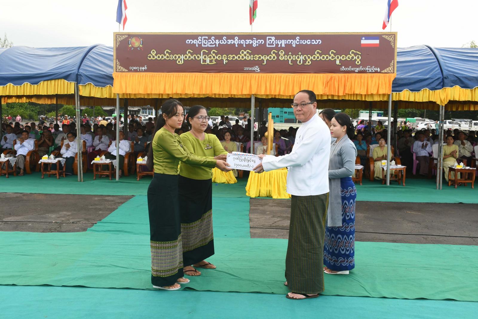 ထို့နောက် ပြည်နယ်ဝန်ကြီးချုပ်၊ ပြည်နယ်အမျိုးသမီးရေးရာအဖွဲ့နှင့် မိခင်နှင့်ကလေးစောင့်ရှောက်မှုကြီးကြပ်ရေးအဖွဲ့နာယက၊ ပြည်နယ်တရားလွှတ်တော်တရားသူကြီးချုပ်၊ ပြည်နယ်အစိုးရအဖွဲ့ဝင်များ၊ ပြည်နယ်အဆင့်ဌာန ဆိုင်ရာများ၊ လူမှုရေးအသင်းအဖွဲ့များ၊ စေတနာရှင်အလှူရှင်များက ဆရာတော်အရှင်သူမြတ်များအား လှူဖွယ် ဝတ္ထုပစ္စည်းများနှင့်နဝကမ္မအလှူငွေများဆက်ကပ်လှူဒါန်းကြပြီး နိုင်ငံတော်ဩဝါဒါစရိယ နောင်လုံဌာန်ပတိုင်ကျောင်းဆရာတော် အဂ္ဂမဟာသဒ္ဓမ္မဇောတိကဓဇ၊မဟာဂန္ထဝါစကပဏ္ဍိတ ဘဒ္ဒန္တဝိဇ္ဇာနန္ဒထံမှ အနုမောဒနာတရားနာကြားကာ လှူဒါန်းမှုအစုစုတို့အတွက် ရေစက်သွန်းချအမျှပေးဝေ၍ ဗုဒ္ဓ သာသနံ စိရံ တိဌတု သုံးကြိမ်ရွတ်ဆို ဆုတောင်း၍ အခမ်းအနားကို ရုတ်သိမ်းသည်။
