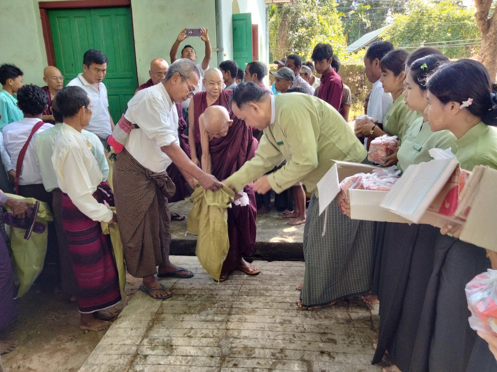 ထို့နောက် ဆရာတော်သံဃာတော်များအားဒါယကာ ဒါယိကာမများဖြစ်ကြသော မြို့နယ် စီမံခန့်ခွဲရေးနှင့်အုပ်ချုပ်ရေးကော်မတီဥက္ကဋ္ဌနှင့်အဖွဲ့ဝင်များ အထွေထွေအုပ်ချုပ်ရေးဦးစီးဌာန ဝန်ထမ်းများ ဌာနဆိုင်ရာအကြီးအကဲများနှင့် ဝန်ထမ်းများ မြို့နယ်အမျိုးသမီးရေးရာအဖွဲ့ ဥက္ကဋ္ဌနှင့်အဖွဲ့ဝင်များ ရပ်ကွက်နေပြည်သူများ ရပ်ဝေးရပ်နီးအလှူရှင်များက ဝတ္ထုငွေနှင့် လှူဖွယ်ပစ္စည်းများ လောင်းလှူခဲ့ကြောင်း သိရသည်။