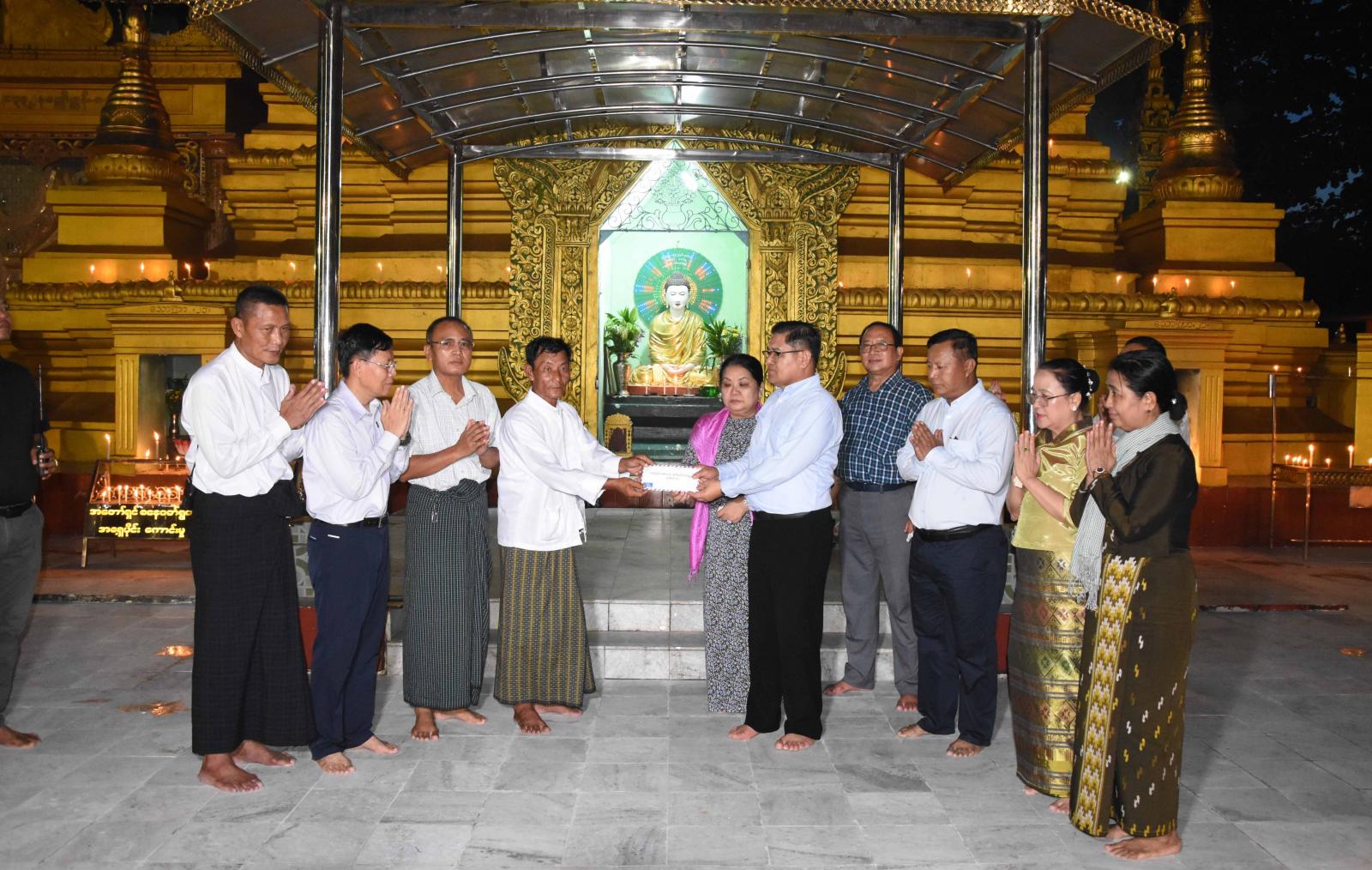 ထို့နောက် ပြည်နယ်ဝန်ကြီးချုပ်နှင့် အဖွဲ့ဝင်များသည် မြစ်ကြီးနားမြို့ ရန်ကြီးအောင်ရပ်ကွက် အတွင်းရှိ ရှေးဟောင်းသမိုင်းဝင်အံတော်ရှင်စေတီတော်မြတ်ကြီးသို့ သွားရောက်ခဲ့ကြပြီး အန္တရာယ် ကင်း ပရိတ်တရားတော်များ ရွတ်ဖတ်ပူဇော်ခြင်း၊ ဘုရားဖူးကုသိုလ်ကောင်းမှုဒါနပြုရန် လာရောက် ကြသည့် ပြည်သူများနှင့်အတူ ဆီမီး (၁၀၀၀) ထွန်းညှိပူဇော်ခဲ့ကြကာ စေတီတော်အား လက်ယာ ရစ်ပတ်ပူဇော်ခဲ့ကြပြီး မြို့နယ်အထွေထွေအုပ်ချုပ်ရေးဦးစီးဌာန ဝန်ထမ်းများက ဆန်ပြုတ် စတုဒီသာ ဖြင့် ဧည့်ခံကျွေးမွေးမှုများကို လိုက်လံကြည့်ရှုအားပေးခဲ့ကြသည်။