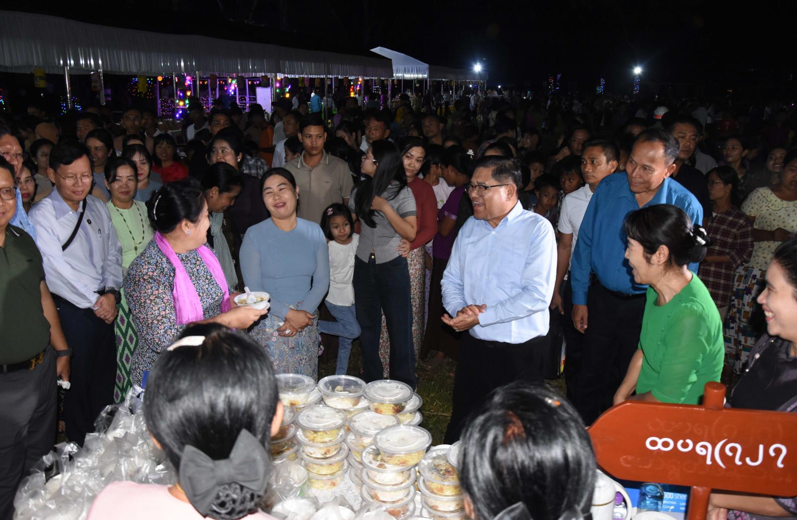 ယင်းနောက် ပြည်နယ်ဝန်ကြီးချုပ်နှင့် အဖွဲ့ဝင်များသည် မင်းရပ်ရပ်ကွက်၊ ဧရာဝတီမြစ်ကမ်း ဘေးရှိ ပြည်သူ့ရင်ပြင်နှင့် ဧရာဦးပန်းခြံအတွင်း သီတင်းကျွတ်ပွဲတော် ရောင်စုံမီးများ အလှဆင်ထားခြင်း၊ တိုင်းရင်းသားအဆိုတော်များ၏ စင်တင်တေးဂီတဖျော်ဖြေမှု အစီအစဉ်များဖြင့် ယခင်နှစ်များနှင့်မတူ လာရောက်လည်ပတ်ပျော်ရွှင်သူများဖြင့် စည်ကားများပြားနေမှုကို လှည့်လည်ကြည့်ရှုအားပေးခဲ့ကြ ပြီး ပြည်နယ်ဝန်ကြီးချုပ်နှင့် တာဝန်ရှိသူများက သီတင်းကျွတ်ပွဲတော်ကာလအတွင်း ဌာနဆိုင်ရာ များ၏ အလှည့်ကျကျွေးမွေးသည့် စတုဒီသာများကို ပြည်သူများအား လိုက်လံဝေငှကျွေးမွေးသည်။