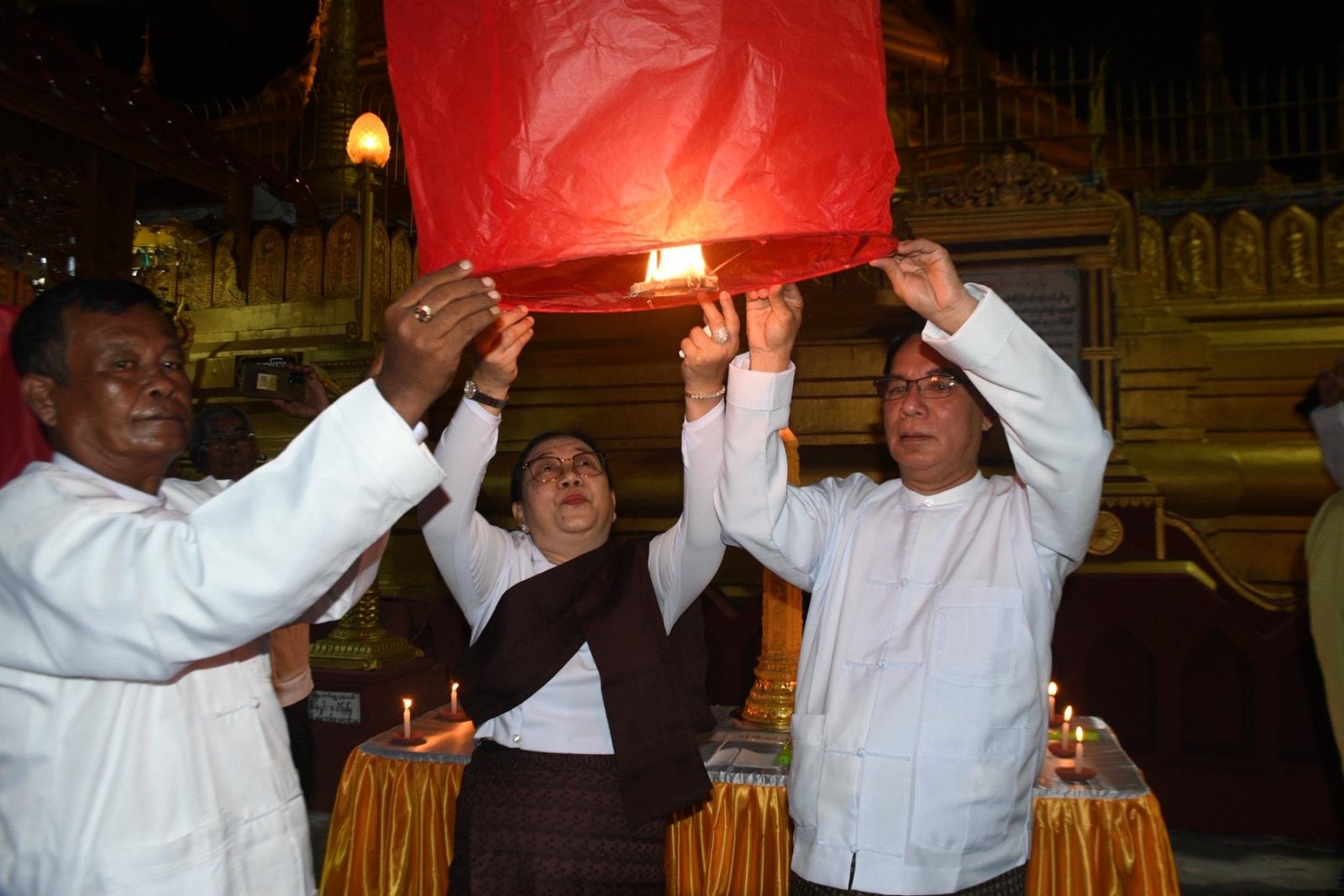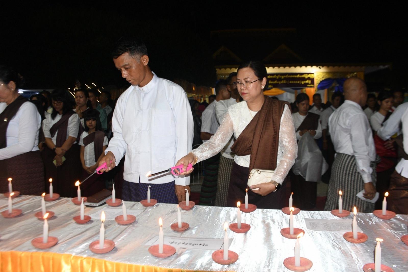 ဦးစွာ တိုင်းဒေသကြီးဝန်ကြီးချုပ် ဦးမျိုးဆွေဝင်း၊ ဇနီး ဒေါ်စိုးစိုးသက်၊ တိုင်းဒေသကြီး တရားလွှတ်တော် တရားသူကြီးချုပ်၊ တိုင်းဒေသကြီး ဝန်ကြီးများ ဆုတောင်းပြည့် ရွှေမော်ဓောစေတီတော်မြတ်ကြီးအား ဆီမီး(၁၀၀၀၀)အား မီးထွန်းညှိပူဇော်ခဲ့ကြသည်။