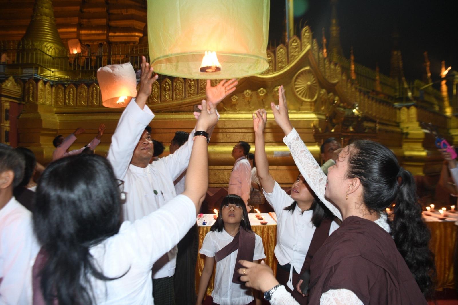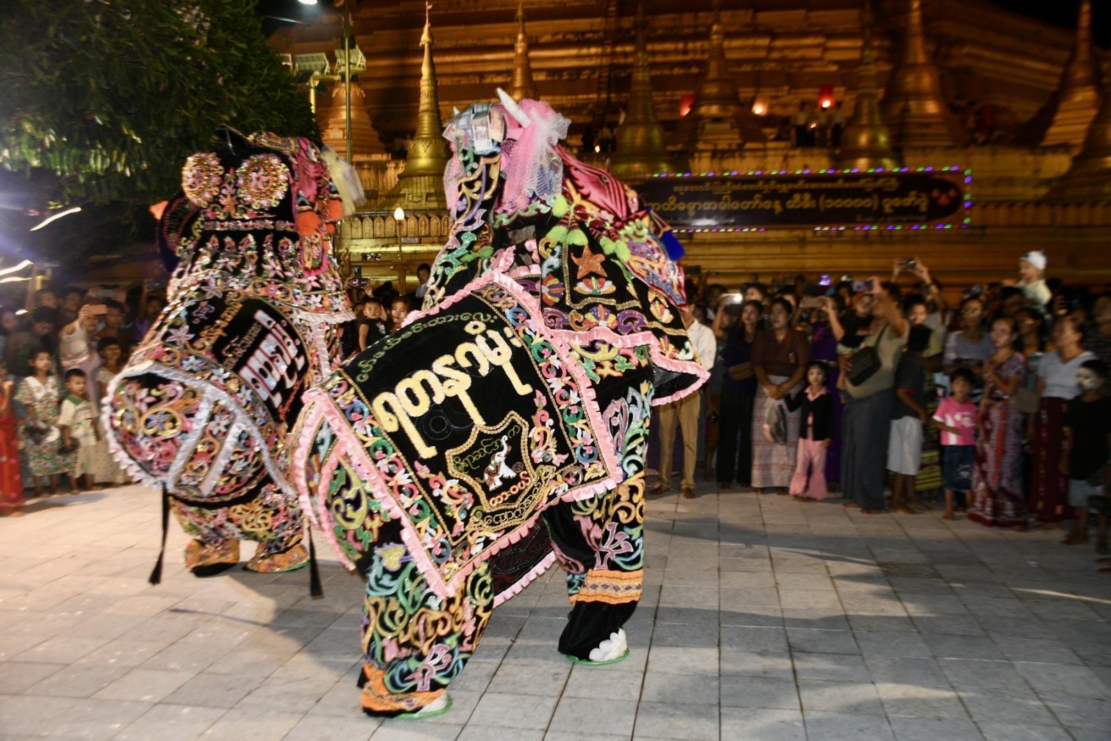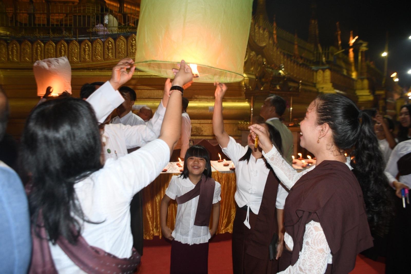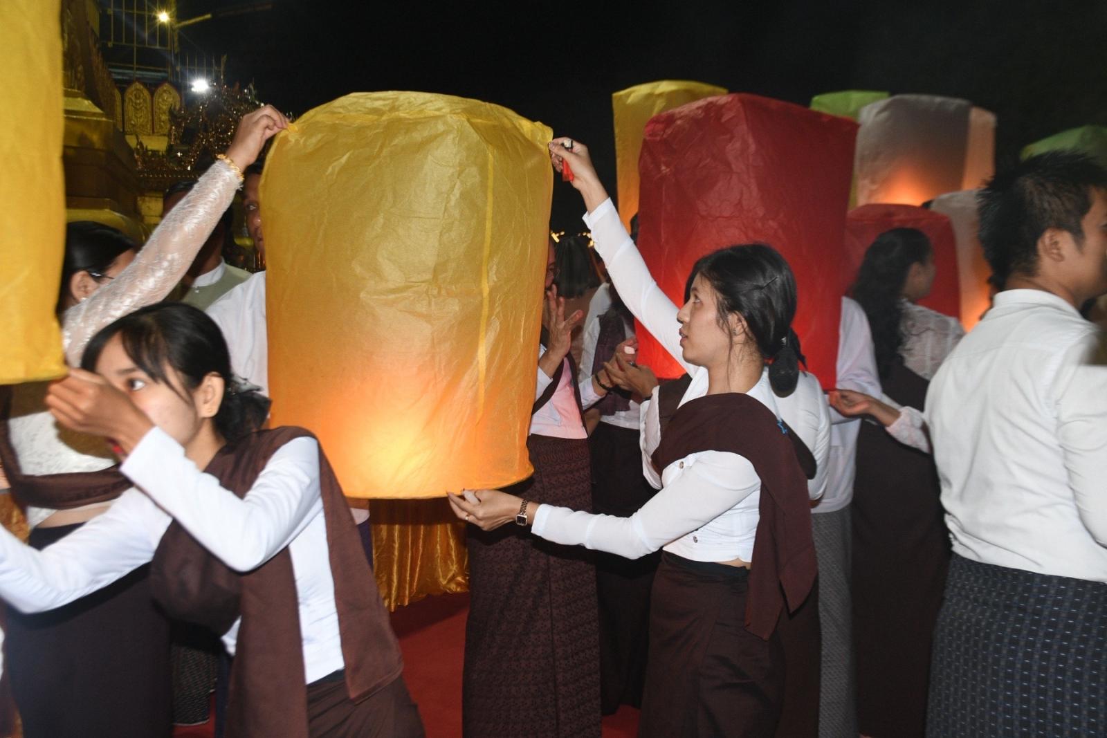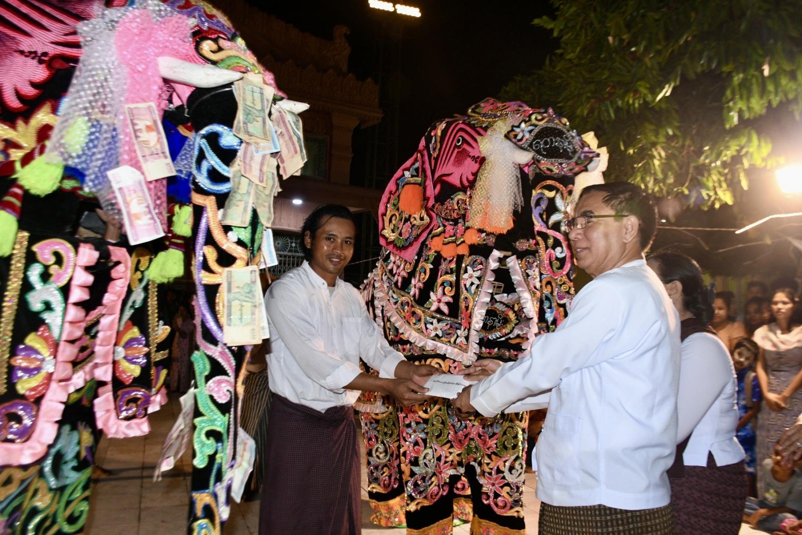 ထို့နောက် ရောင်စုံမီးပုံပျံများ လွှတ်တင်ပူဇော်ခဲ့ကြပြီး တေးညွှန့်မင်္ဂလာ တေးဂီတအဖွဲ့က ညိမ့်ညောင်းသာယာသော ဓမ္မတေးများဖြင့် သီဆိုပူဇော်ခဲ့ကြရာ တိုင်းဒေသကြီး ဝန်ကြီးချုပ်က ဖျော်ဖြေတင်ဆက်ခဲ့ကြသည့် ရတနာမိုးဆင်အကအဖွဲ့နှင့် တေးညွှန့်မင်္ဂလာ တေးဂီတအဖွဲ့တို့အား ဂုဏ်ပြုငွေများ ပေးအပ်သည်။