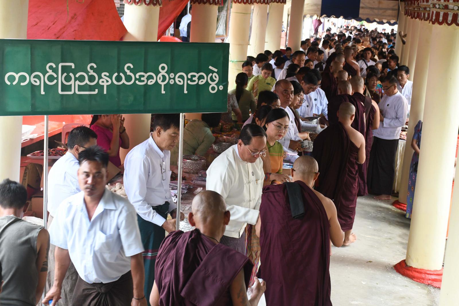 ဘားအံမြို့၊ မဲဘောင်ကျောင်းတိုက်သိမ်တော်ကြီးအတွင်း ဘားအံမြို့ပေါ်ရှိ ကျောင်းတိုက်အသီးသီးမှ ဩဝါဒဆရာတော်ကြီးများ၊သံဃာတော်များကပဝါရဏာပြုတော်မူကြပြီး ပဝါရဏာပြုပြီးသည့် ဆရာတော်၊ သံဃာတော်များအား ကရင်ပြည်နယ်ဝန်ကြီးချုပ်ဦးစောမြင့်ဦး၊ ပြည်နယ်အမျိုးသမီး ရေးရာအဖွဲ့နှင့် မိခင်နှင့်ကလေးစောင့်ရှောက်မှု ကြီးကြပ်ရေးအဖွဲ့နာယက၊ ပြည်နယ်တရား လွှတ်တော်တရားသူကြီးချုပ်၊ ပြည်နယ်အစိုးရအဖွဲ့ဝင်များ၊ ပြည်နယ်၊ ခရိုင်၊ မြို့နယ်အဆင့် ဌာနဆိုင်ရာများ၊ ဘားအံမြို့ပေါ်ရှိ စေတနာရှင်၊ အလှူရှင်များက သိမ်ဆင်းလောင်းလှူကြရာ စုစုပေါင်း ရဟန်း၊ သံဃာ၊ သာမဏေ ၃၃၈ ပါးအား လှူဖွယ် ဝတ္ထုပစ္စည်းများနှင့်နဝကမ္မအလှူငွေများ စုပေါင်းလောင်းလှူခဲ့ကြသည်။