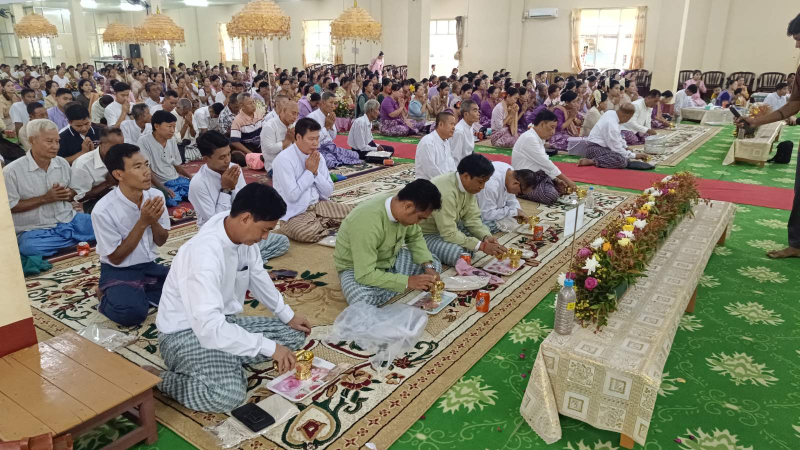 ဆက်လက်၍ မွန်းလွဲ(၁)နာရီအချိန်တွင် ကထိန်သင်္ကန်းဆပ်ကပ်လှူဒါန်းပွဲကို ဆက်လက်ကျင်းပခဲ့ပြီး ရှေးဦးစွာ အခမ်းအနားကို “နမောတဿ” သုံးကြိမ်ရွှတ်ဆို ဘုရားကန်တော့ ဖွင့်လှစ်ခဲ့ပြီး ကမ်းနီကျောင်း ဆရာတော်ဦးဝိစာရထံမှ သရဏဂုံံ(၃)ပါးနှင့် ငါးပါးသီလ ခံယူဆောက်တည်ကြပြီး ဆရာတော်/ သံဃာတော် အရှင်သူမြတ်များမှ ချီးမြှင့်သည့် ပရိတ်တရားတော်များ နာယူကြည်ညိုကြသည်။
