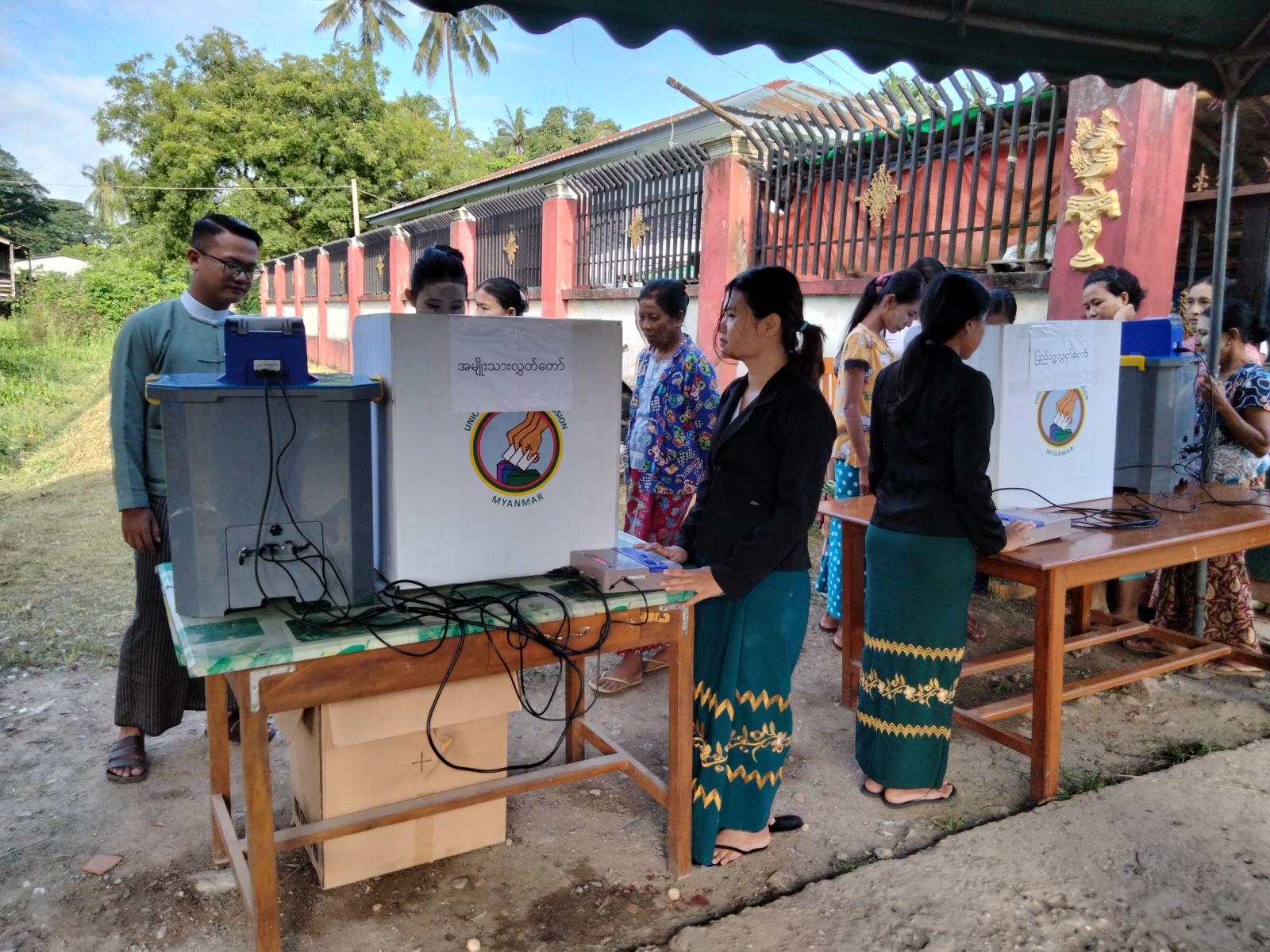 ဦးစွာ မြို့နယ်ရွေးကောက်ပွဲကော်မရှင်အဖွဲ့ခွဲရုံး ဦးစီးအရာရှိ ဦးသက်ဦးဟန်က မဲဆန္ဒရှင် ဈေးရောင်း/ဈေးဝယ်သူများအား မြန်မာအီလက်ထရောနစ်မဲပေးစက် (MEVM) အသုံးပြုပုံနှင့်ပတ်သက်၍ ရှင်းလင်းပြောကြားပြီး တက်ရောက်လာကြသော ပြည်သူတစ်ဦးချင်းအလိုက် မဲပေးပုံ မဲထည့်နည်းတို့အား လက်တွေ့ဆောင်ရွက်ပေးခဲ့သည်။
