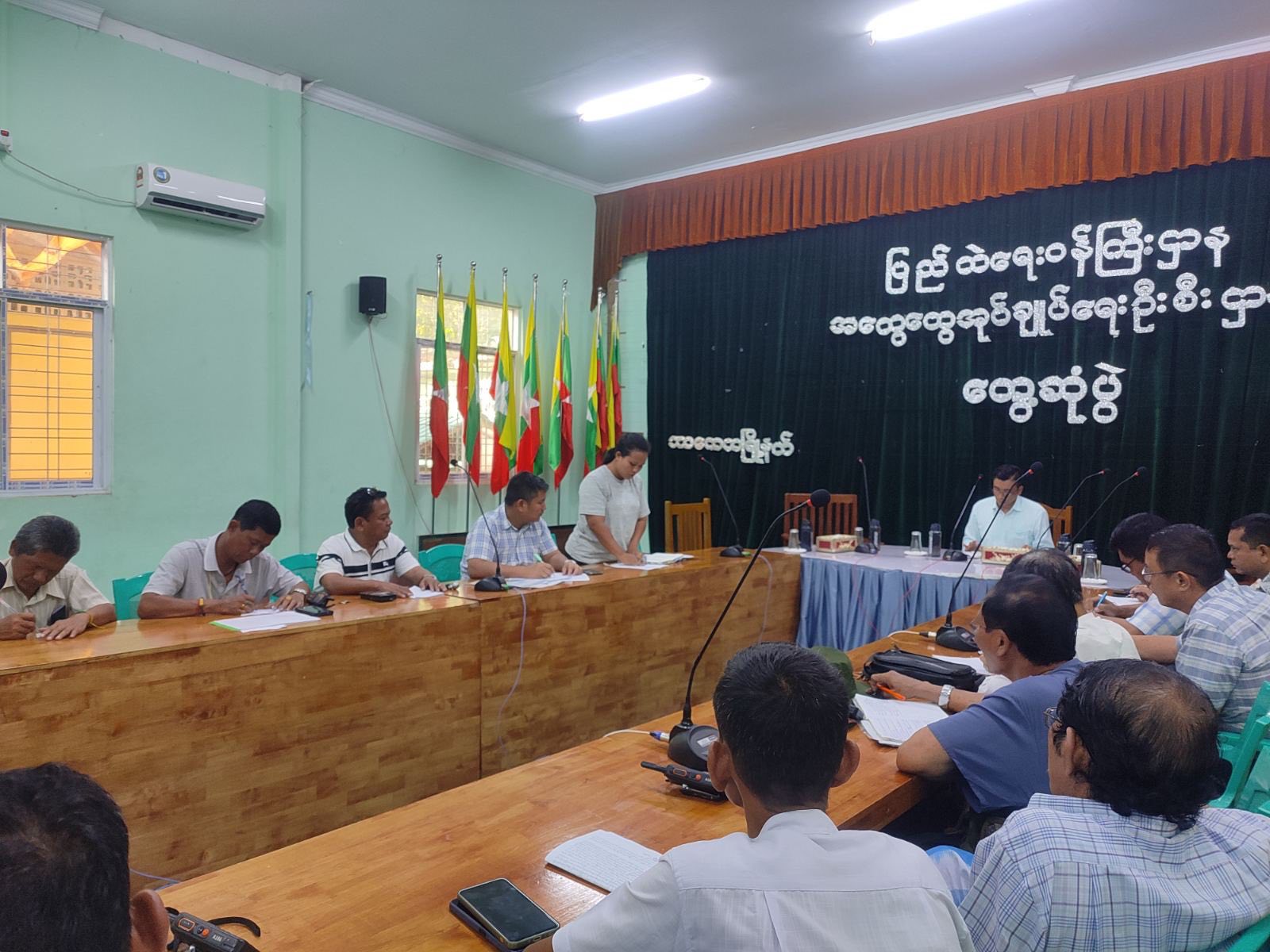 ရှေးဦးစွာ မြို့နယ်အုပ်ချုပ်ရေးမှူးမှ (၈-၁၀-၂၀၂၅) ရက်နေ့တွင် မြို့နယ်အားကစားကွင်း၌ ဖူဆယ်ဘောလုံးပြိုင်ပွဲကျင်းပပြုလုပ်ရန် စီစဥ်ထားရှိမှုကိစ္စရပ်များ၊ ပြည်သူ့စစ်မှုထမ်း ဆင့်ခေါ်ရာတွင် သက်မှတ်လျာထားဦးရေပြည့်မီရေး၊ ဥပဒေနှင့်အညီဖြစ်စေရေး ဆောင်ရွက်ကြ ရန်ကိစ္စ၊ မဲဆန္ဒရှင်စာရင်းများတွင် ရက်ပေါင်း(၁၈၀)နှင့်အထက် ရောက်ရှိနေထိုင်သူများအား မဲစာရင်းပါရှိစေရေးပုံစံ(၃က)ဖြင့် လျှောက်ထားနိုင်ရေးကျယ်ကျယ်ပြန့်ပြန့် အသိပေးဆောင်ရွက်ရန်၊ ရွေးကောက်ပွဲအသိပညာပေး ပိုစတာများအား မြကန်သာပန်းခြံရှေ့နေရာ၊ ဧရာ၀ဏ်လမ်းနှင့် အတွင်းရှုခင်းသာလမ်းထောင့်နေရာတို့တွင် စိုက်ထူနိုင်ရေးလိုအပ်သည်များ ပူးပေါင်းဆောင်ရွက်ကြရန်ကိစ္စရပ်များ ဆွေးနွေးမှာကြားခဲ့ပြီး မြို့နယ်အား/ကာမှူးဒေါ်ခင်ကောင်းစံမှ ဖူဆယ်ဘောလုံးပြိုင်ပွဲဖွင့်ပွဲနှင့် ပြိုင်ပွဲစည်းမျဥ်းစည်းကမ်းများကို အသေးစိတ် ဆွေးနွေးတင်ပြခဲ့ပါကြောင်း သိရသည်၊၊