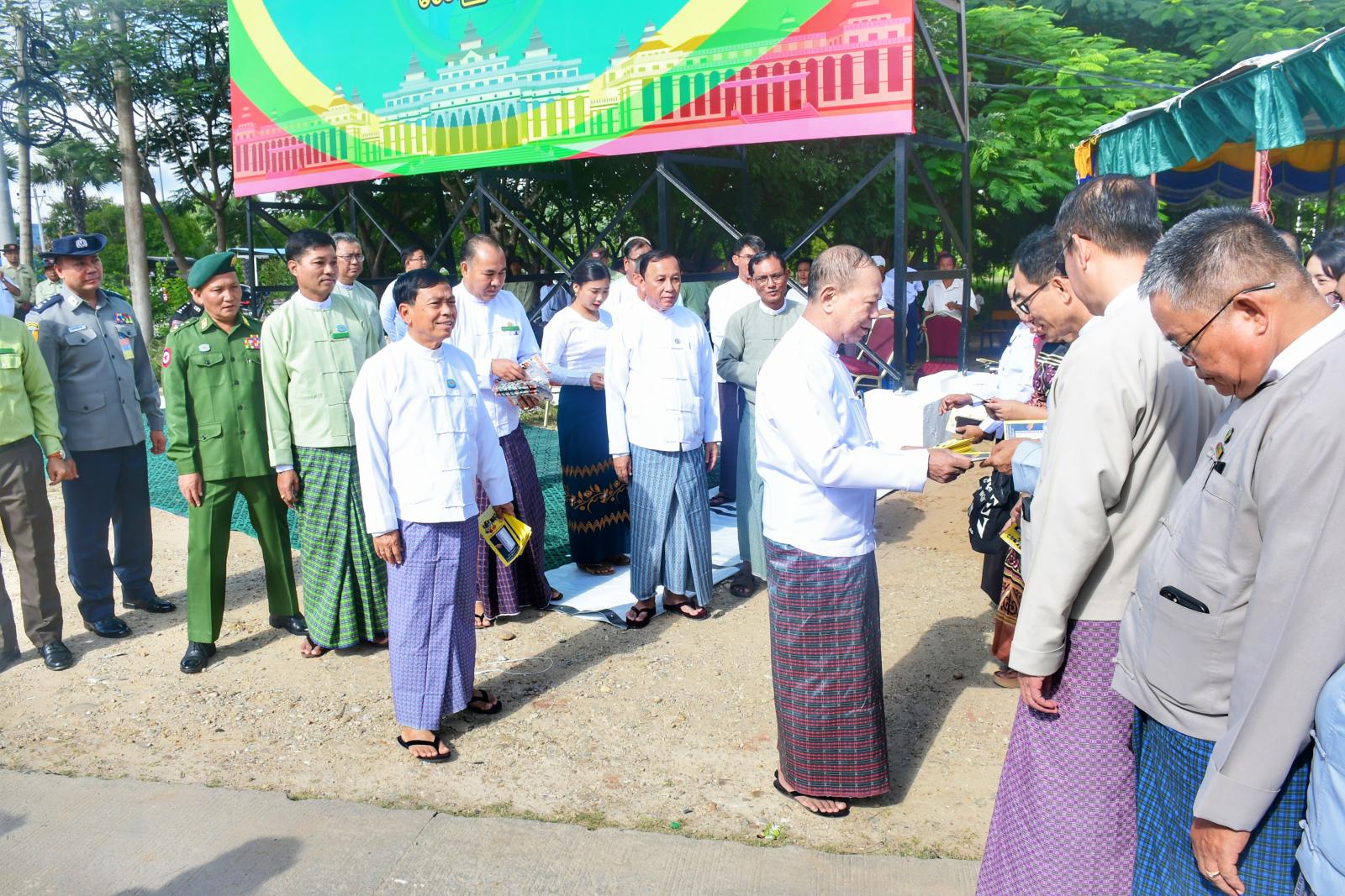 ယင်းနောက် ပြည်ထောင်စုရွေးကောက်ပွဲကော်မရှင်ဥက္ကဋ္ဌနှင့် နေပြည်တော်ကောင်စီဥက္ကဋ္ဌတို့က အခမ်းအနားတက်ရောက်လာကြသူများအား ရွေးကောက်ပွဲဆိုင်ရာ မဲဆန္ဒရှင်အသိပညာပေးခြင်းနှင့် MEVM အသိပညာပေးလက်ကမ်းစာစောင်များအား ဖြန့်ဝေပေးခဲ့ပြီး အခမ်း အနားအပြီးတွင် အမှတ်တရစုပေါင်းမှတ်တမ်းတင် ဓာတ်ပုံရိုက်ကူးခဲ့ကြောင်း သိရသည်။