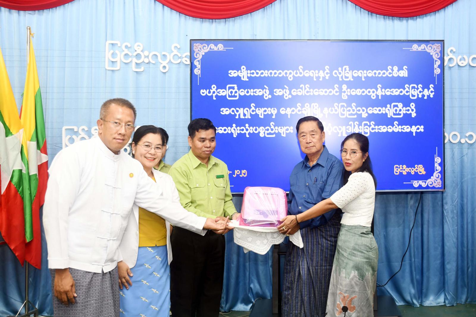 ထို့နောက် ဆေးရုံသုံးပစ္စည်းများ ထောက်ပံ့လှူဒါန်းခြင်းနှင့်ပတ်သက်၍ နောင်ချိုမြို့နယ်၊ ပြည်သူ့ဆေးရုံကြီး (ကိုယ်စား) ပြင်ဦးလွင်မြို့၊ ခုတင်-၃၀၀ ဆံ့ ပြည်သူ့ဆေးရုံ၊ ဆေးရုံအုပ်ကြီး ဒေါက်တာသင်းသင်းအိက ကျေးဇူးတင်စကားပြန်လည်ပြောကြားခဲ့ပြီး စုပေါင်းမှတ်တမ်းတင်ဓာတ်ပုံရိုက်ကူးခဲ့ကြကြောင်း သိရှိရသည်။