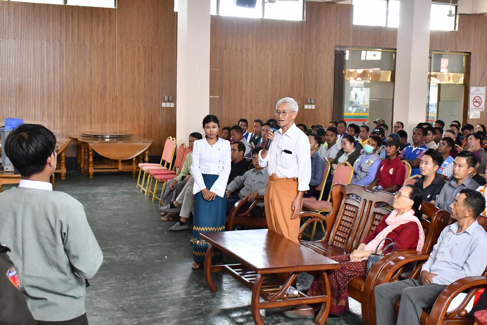 အဆိုပါအခမ်းအနားသို့ မြို့နယ်စီမံခန့်ခွဲရေးနှင့် အုပ်ချုပ်ရေးကော်မတီဥက္ကဋ္ဌ ဦးဇော်လင်း၊ နိုင်ငံရေးပါတီကိုယ်စားလှယ်များ၊ ခရိုင်ဆင့်/ မြို့နယ်ဆင့် ကော်မရှင်အဖွဲ့ဝင်များနှင့် ရက်ကွက်နေ မဲဆန္ဒရှင်ပြည်သူများ တက်ရောက်ခဲ့ကြောင်း သိရှိရပါသည်။