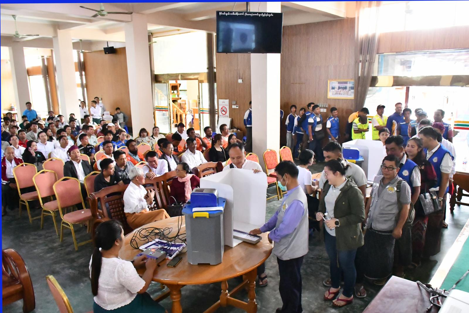 ယင်းသို့ ဆောင်ရွက်ရာတွင် မြို့နယ်စီမံခန့်ခွဲရေးနှင့်အုပ်ချုပ်ရေးကော်မတီဥက္ကဋ္ဌ ဦးဇော်လင်းနှင့် မြို့နယ်ရွေးကောက်ပွဲကော်မရှင်အဖွဲ့ခွဲ အတွင်းရေးမှူး ဦးဇာနည်မြင့်ထွန်းတို့က မြန်မာ့အီလက်ထရောနစ်မဲပေးစက်(MEVM)နှင့် ပတ်သက်၍ ကိုင်တွယ်အသုံးပြုပုံနှင့် မဲဆန္ဒရှင်ပြည်သူများ ကိုယ်တိုင်စနစ်တကျ မဲပေးပုံအဆင့်ဆင့်ကို ရှင်းလင်းခဲ့ပြီး အသိပညာပေး လက်ကမ်းစာစောင်များ ဖြန့်ဝေခဲ့သည်။ မဲဆန္ဒရှင်ပြည်သူများက သိလို၍မေးမြန်းသည်များကို ပြန်လည်ဖြေကြားပေးခဲ့သည်၊၊ ဆက်လက်၍ တက်ရောက်လာသော မဲဆန္ဒရှင်ပြည်သူများက လွှတ်တော်အသီးသီးတွင် ကိုယ်တိုင်မဲပေးခြင်းကို လက်တွေ့ဆောင်ရွက်ခဲ့ကြသည်။