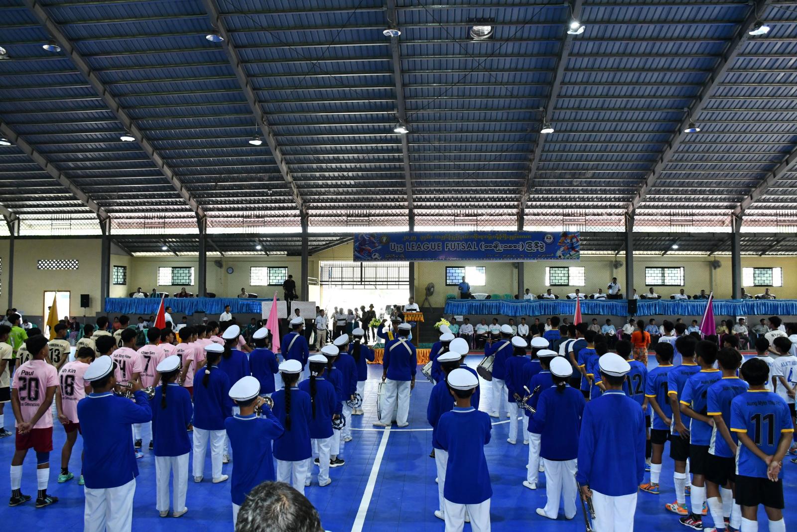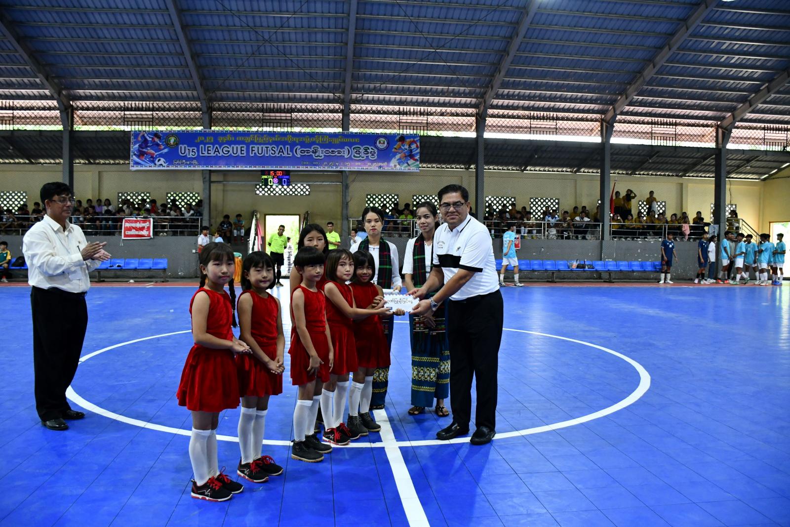 ကချင်ပြည်နယ်အတွင်းမှ ဖူဆယ်ဘောလုံးမျိုးဆက်သစ်အားကစားများ ပေါ်ထွန်းလာစေရေး ရည်ရွယ်ကျင်းပပြုလုပ်သည့် ကချင်ပြည်နယ်ဝန်ကြီးချုပ်ဖလား အသက်(၁၅)နှစ်အောက် အမျိုးသား ကလပ်ပေါင်းစုံ ဖူဆယ်ဘောလုံးလိဂ်ပြိုင်ပွဲ ဖွင့်ပွဲအခမ်းအနားကို ငြိမ်းချမ်းသာယာဖူဆယ်အားကစားရုံ၌ ကျင်းပပြုလုပ်ရာ ပြည်နယ်ဝန်ကြီးချုပ် ဦးခက်ထိန်နန် တက်ရောက်ဖွင့်လှစ်ပေးသည်။