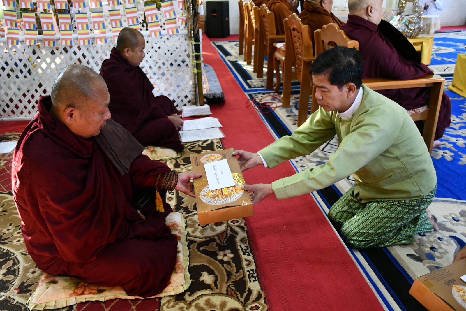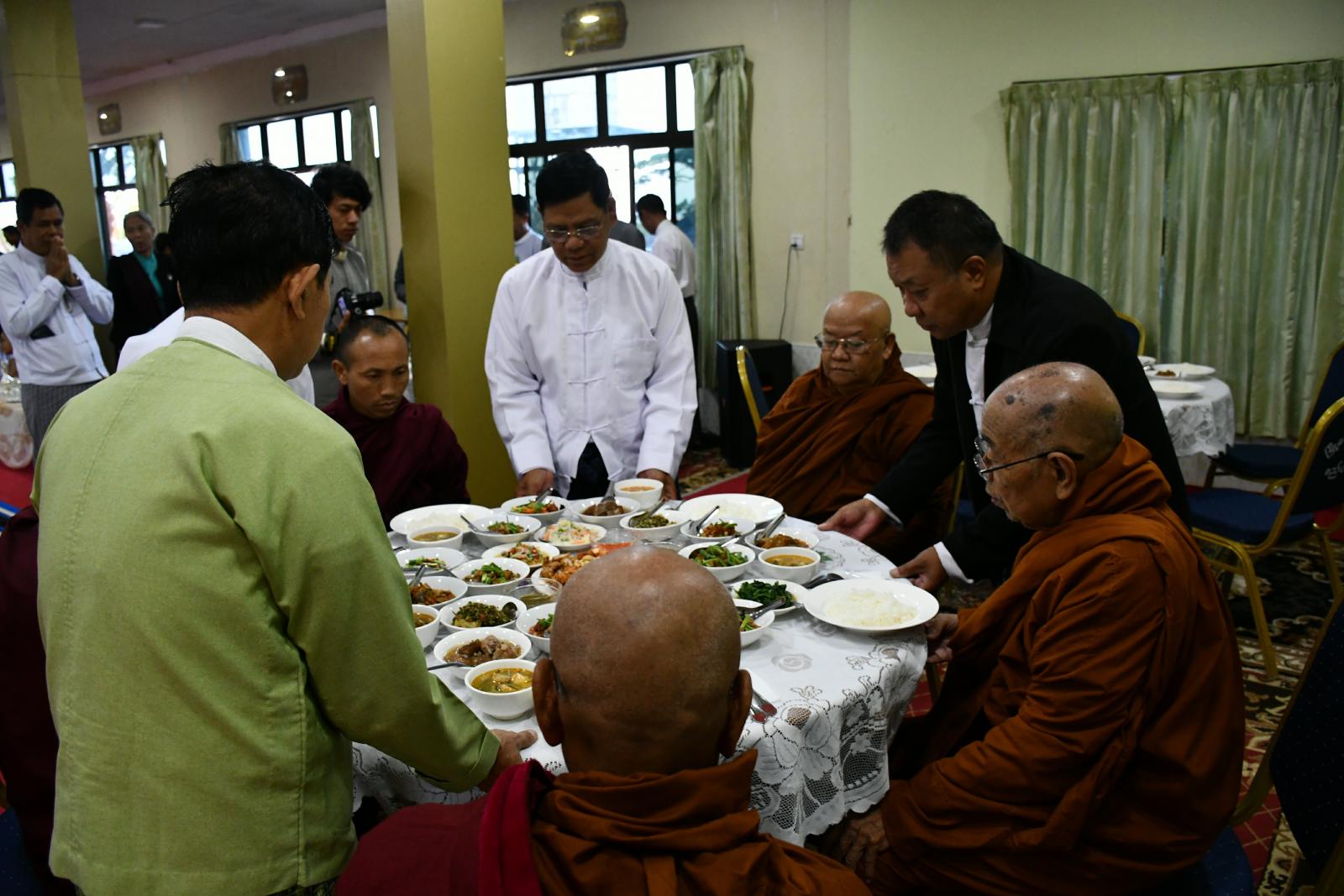 ဦးစွာ ရှမ်းပြည်နယ်အစိုးရအဖွဲ့ ပြည်နယ်ဝန်ကြီးဦးခွန်သိန်းမောင်က စူဠာမုနိလောက ချမ်းသာစေတီတော်ဓမ္မာရုံရှိ ဗုဒ္ဓမြတ်စွာဘုရားအား ပန်း၊ ရေချမ်း၊ ဆွမ်း၊ ဆီမီးဆက်ကပ်လှူဒါန်း ပြီး ဆရာတော်၊ သံဃာတော်များအား ပြည်နယ်ဝန်ကြီး၊နှင့် တာဝန်ရှိသူများက အရုဏ်ဆွမ်း ဆက်ကပ်လှူဒါန်းပေးကြသည်။