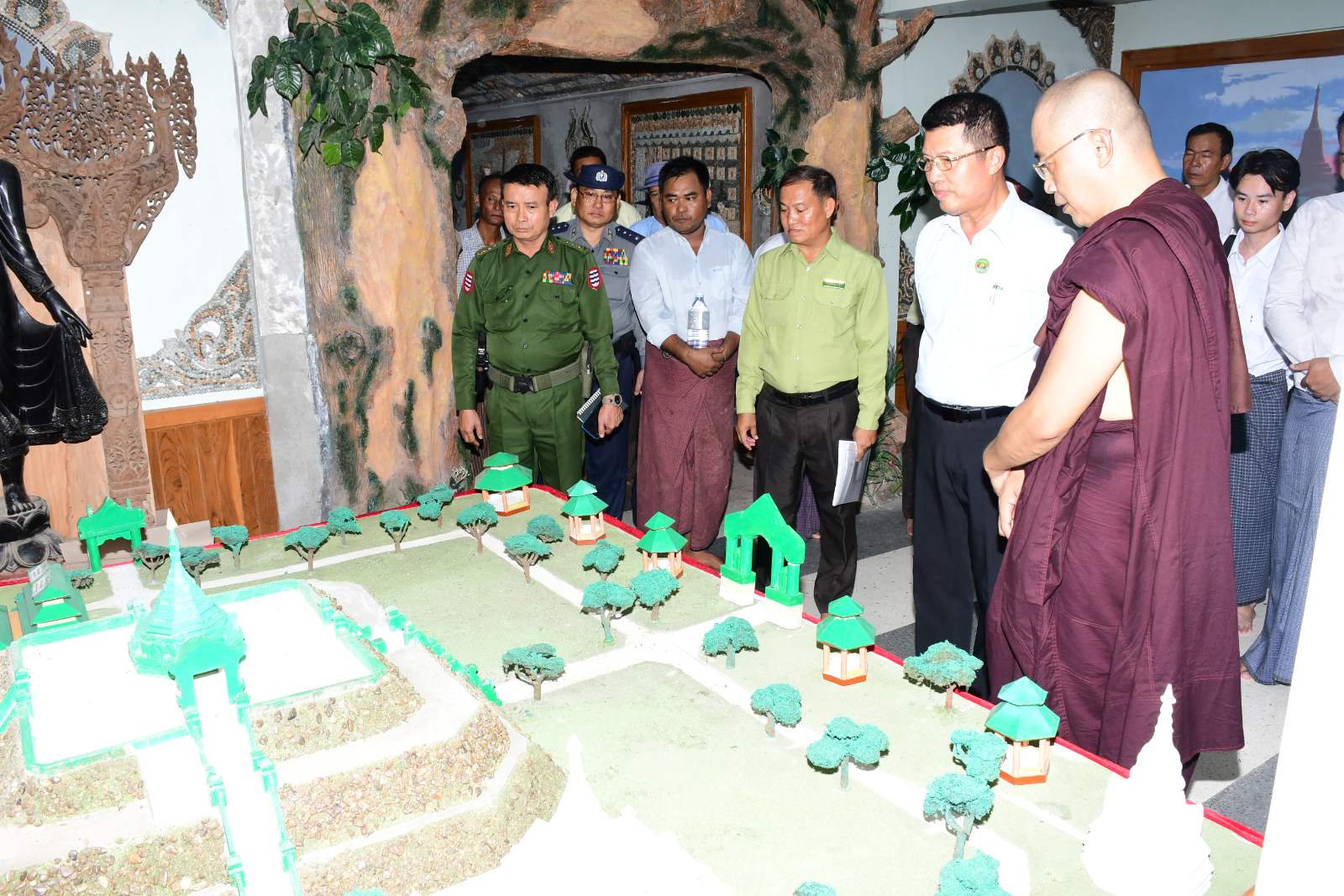 ဦးစွာ တိုင်းဒေသကြီးဝန်ကြီးချုပ်နှင့်အဖွဲ့သည် အင်္ဂပူမြို့နယ်၊ ကွင်းကောက်ကျေးရွာအုပ်စုရှိ အနန္တဂုဏ်ရည် အင်ကြင်းကျောက်စေတီတော်မြတ်အား ဖူးမြော်ကြည်ညို၍ ပန်း၊ ရေချမ်း၊ ဆီမီးများဆက်ကပ်လှူဒါန်းခဲ့သည်။ ဆက်လက်၍ ဝိဇယသိဒ္ဓိကျောက်စိမ်းစေတီတော်မြတ်ကြီး၏ လှိုင်ဂူတော်အတွင်းရှိ ဝိဇယသိဒ္ဓိကျောက်စိမ်း စေတီတော်ပုံစံငယ်၊ ကျောက်စီနံရံကပ်ပန်းချီများ၊ ရုပ်ပွားတော်မြတ်များနှင့် မြန်မာမှုလက်ရာများအား ဖူးမြော်ကြည်ညိုလေ့လာခဲ့ပြီး စေတီတော်ကြီး၏ ရင်ပြင်တော်နှင့် တည်ဆောက်ရေး လုပ်ငန်းများအားလှည့်လည်ကြည့်ရှုစစ်ဆေးခဲ့သည်။