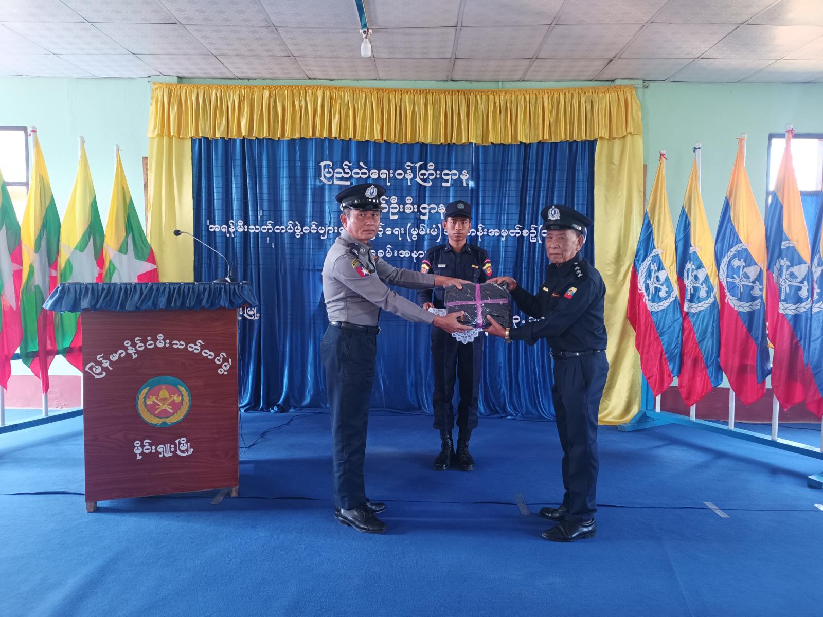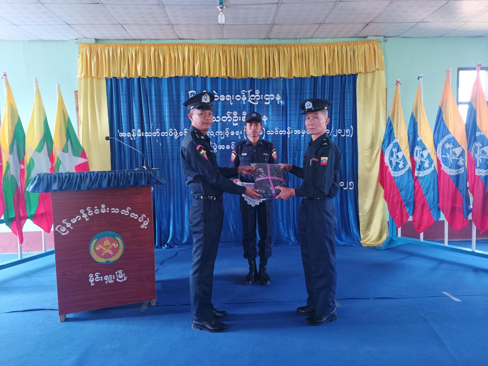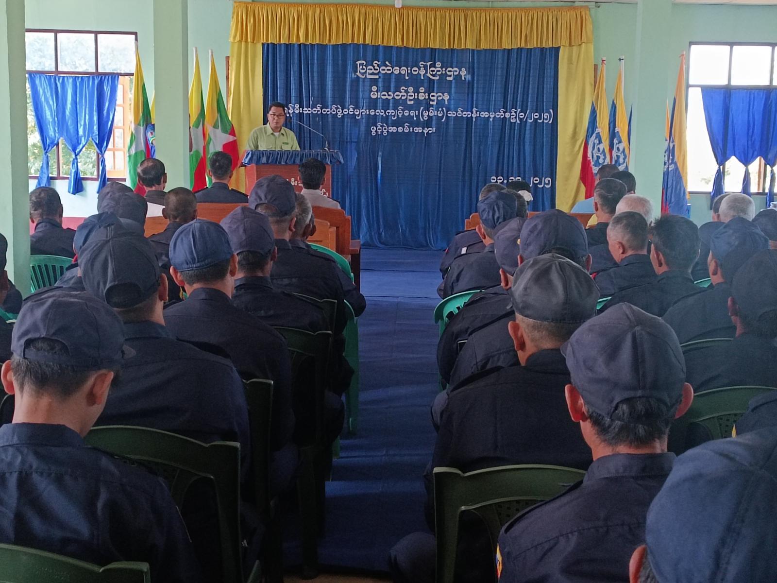 ယင်းဖွင့်ပွဲအခမ်းအနားကို ဒုတိယမြို့နယ်အုပ်ချုပ်ရေးမှူး ဦးပြည့်ဖြိုးအောင်က သင်တန်းဖွင့်မိန့်ခွန်းပြောကြားပြီး မြို့နယ်ရဲတပ်ဖွဲ့မှူး ရဲမှူးကျော်လင်းနှင့်မီးသတ်ဦးစီးဌာန မြို့နယ်ဦးစီးမှူး ဦးဝင်းဇင်ဖြိုးတို့က အရန်မီးသတ်တပ်ဖွဲ့ဝင်များအား တူညီဝတ်စုံများ ပေးအပ်ခဲ့သည်။