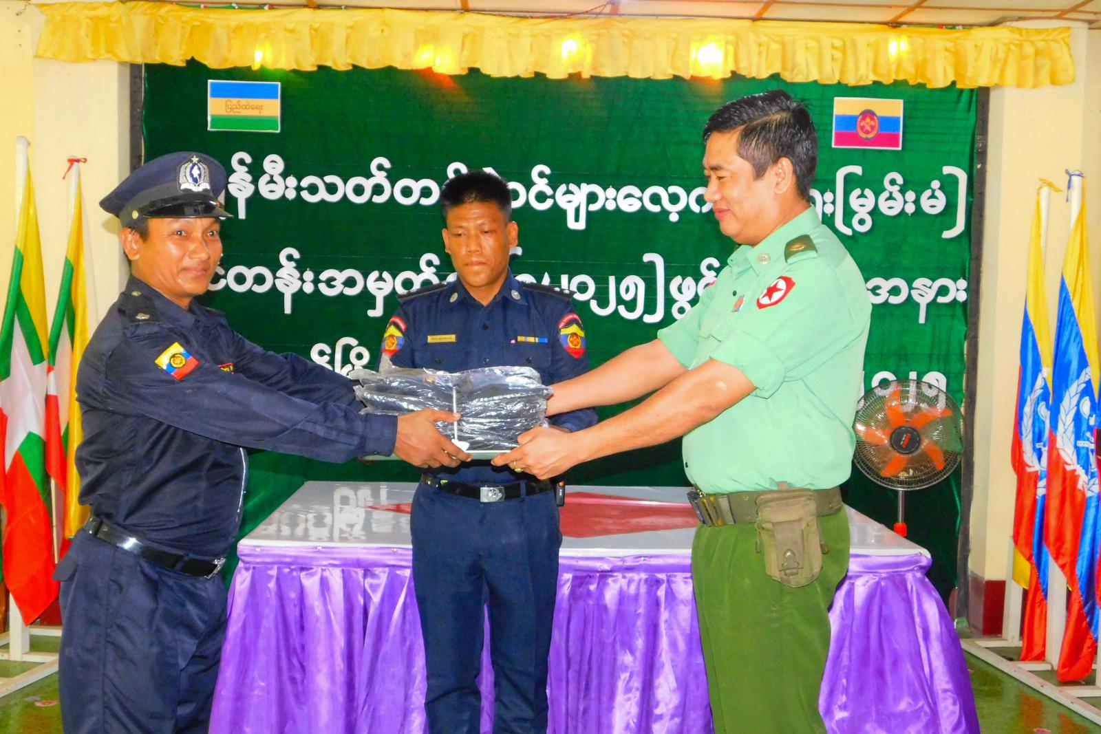 သင်တန်းဖွင့်ပွဲအခမ်းအနားတွင် မြို့နယ်စီမံခန့်ခွဲရေးနှင့်အုပ်ချုပ်ရေးကော်မတီဥက္ကဋ္ဌ ဦးနိုင်နိုင်ဦးက အဖွင့်အမှာစကားပြောကြားခဲ့ပြီး မြို့နယ်စီမံခန့်ခွဲရေးနှင့်အုပ်ချုပ်ရေးကော်မတီဥက္ကဋ္ဌ ဦးနိုင်နိုင်ဦးနှင့် မြို့နယ်စီမံခန့်ခွဲရေးနှင့်အုပ်ချုပ်ရေးကော်မတီအဖွဲ့ဝင် ဗိုလ်မှူးဖြိုးဝေစိုးတို့က တူညီဝတ်စုံများကို အရန်တပ်ဖွဲ့ဝင်များထံသို့ ပေးအပ်ခဲ့ကြောင်းလည်း သိရသည်။