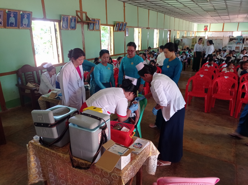 အဆိုပါ ကျောင်းအခြေပြု ကာကွယ်ဆေးထိုးနှံပေးခြင်းကို မြို့နယ်ပြည်သူ့ကျန်းမာရေးနှင့်ကုသရေးဦးစီးဌာနမှူး ဒေါက်တာဇင်မီဟန်၏ ကြီးကြပ်မှုဖြင့် ကျန်းမာရေးဝန်ထမ်းများက ကာကွယ်ဆေးဖြင့်ကာကွယ်၍ရသော ရောဂါများ ဖြစ်ပွားသေဆုံးမှုနှုန်း လျော့နည်းစေရေးအတွက် (၂၀၂၅-၂၀၂၆) ပညာသင်နှစ်၊ ပညာသင်ကြားနေသော အခြေခံပညာအထက်တန်းကျောင်း၊ နောင်ကျော့ အလက (ခွဲ)ကျောင်း၊ ဥယျာဉ်အမကကျောင်းနှင့် နမ့်မော်လေ အမကကျောင်းရှိ အသက်(၅)နှစ်ပြည့်ပြီး (၇)နှစ်အောက် ကျောင်းသား၊ ကျောင်းသူ ၉၉ ဦးကို ဆုံဆို့မေးခိုင်ရောဂါကာကွယ်ဆေး ဒုတိယအကြိမ် ထပ်ဆောင်းထိုးနှံပေးခြင်းနှင့် အသက် ၉ နှစ်ပြည့်ပြီး ၁၀ နှစ်အောက် ကျောင်းသူများအား သားအိမ်ခေါင်းကင်ဆာရောဂါကာကွယ်ဆေး ၅၀ ဦးကိုလည်းကောင်း စနစ်တကျထိုးနှံပေးခဲ့ရာ ကျောင်းအုပ်ဆရာမကြီး ဒေါ်နန်းအိအိစံနှင့်ဆရာမများ၊ မိခင်နှင့်ကလေးစောင့်ရှောက်ရေးအသင်းနှင့် အမျိုးသမီးရေးရာ အဖွဲ့တို့က လိုအပ်သောကူညီမှုများ ဆောင်ရွက်ပေးခဲ့ကြောင်း သိရသည်။