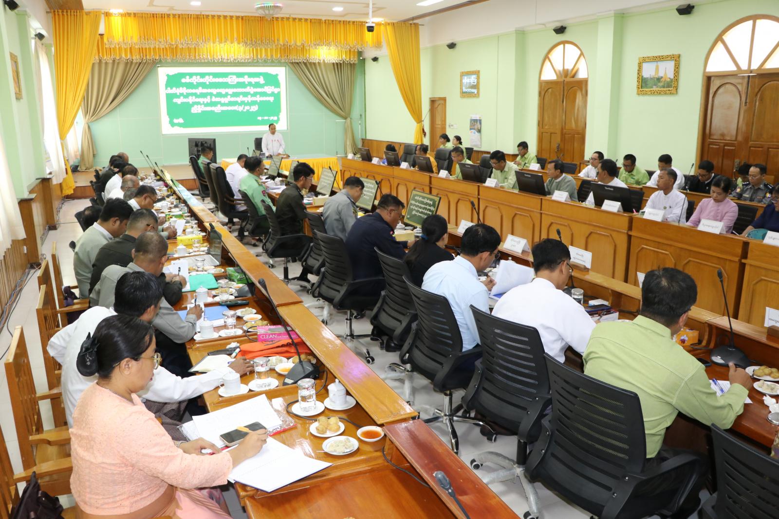 ဦးစွာ တိုင်းဒေသကြီးဝန်ကြီးချုပ် ဦးမြတ်ကျော်က ပြည်ထောင်စုရွေးကောက်ပွဲကော်မရှင်အနေဖြင့် နိုင်ငံ့ဝန်ထမ်းများအပါအဝင် ပြည်သူများနှင့် မဲဆန္ဒရှင်များ မဲပေးခွင့် ဆုံးရှုံးမှုမရှိအောင် ကြေညာချက်ထုတ်ပြန်ဆောင်ရွက်ခြင်းများအား ဝန်ကြီးဌာနများသို့ အကြောင်းကြားပြီး ဆောင်ရွက်နေသကဲ့သို့ မိမိတို့တိုင်းဒေသကြီး အစိုးရအဖွဲ့အနေဖြင့်လည်း အနီးကပ်ကြပ်မတ်ပြီး လိုအပ်ချက်များအား တာဝန်ရှိသူများနှင့်ဝိုင်းဝန်းပူးပေါင်း ဆောင်ရွက်ပေးသွားမည်ဖြစ်ပါကြောင်း၊ မဲဆန္ဒရှင်စာရင်းများ ကပ်ထားကြေညာခြင်းအား နိုဝင်ဘာလတွင် ဒုတိယအကြိမ်အဖြစ် ထပ်မံကပ်ထားကြေညာသွားမည်ဖြစ်သည့်အတွက် အမှန်တကယ်ပါဝင်သင့်သည့် မဲဆန္ဒရှင်စာရင်းများ ကျန်ရှိမှုမရှိစေရေး၊ မပါသင့်သည့် စာရင်းများ ပါရှိမှုမရှိစေရေးနှင့် အချက်အလက် မှားယွင်းခြင်းများအား ယခုပထမအကြိမ် ကပ်ထားကြေညာစဉ်ကပင် သေချာစီစစ်ကာ နောက်တစ်ကြိမ် ကပ်ထားကြေညာမည့်စာရင်းတွင် ပြည့်စုံမှန်ကန်မှုရှိစေရေးတို့အတွက် အလေးထားသတိပြု ဆောင်ရွက်သွားကြရန် လိုအပ်ပါကြောင်း၊ မဲစာရင်းမှန်ကန်ရန် သက်ဆိုင်ရာ အထွေထွေအုပ်ချုပ်ရေးဦးစီးဌာန၊ လူဝင်မှုကြီးကြပ်ရေးနှင့်ပြည်သူ့အင်အားဝန်ကြီးဌာနနှင့် ကော်မရှင်အဖွဲ့များသာမက တာဝန်ရှိသူအားလုံးမှ ပူးပေါင်းဆောင်ရွက်သွားကြ ရန်လိုအပ်ပါကြောင်း၊ ရွေးကောက်ပွဲနီးကပ်လာသည်နှင့်အမျှ လုံခြုံရေးပိုင်းဆိုင်ရာ လုပ်ငန်းများဆောင်ရွက်ရာတွင်လည်း မပေါ့မလျော့ဘဲ ဝိုင်းဝန်းပူးပေါင်း ဆောင်ရွက်သွားကြရန်နှင့် တိုင်းဒေသကြီး အတွင်းရွေးကောက်ပွဲအောင်မြင်စွာ ကျင်းပနိုင်ရေး တာဝန်ရှိသူအားလုံးက ညီညီညွတ်ညွတ်ဖြင့် ဝိုင်းဝန်းဆောင်ရွက်ကာ နိုင်ငံတော်၏ အမျိုးသားရေးတာဝန်အား ကျေပွန်စွာ ထမ်းဆောင်သွားကြရန်လိုအပ်ပါကြောင်း ပြောကြားခဲ့သည်။