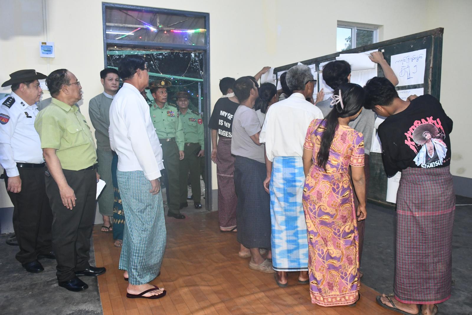 ရန်ကုန်တိုင်းဒေသကြီးဝန်ကြီးချုပ် ဦးစိုးသိန်းနှင့် တိုင်းဒေသကြီးဝန်ကြီးများသည် ယမန်နေ့ညနေပိုင်းက ၂၀၂၅ ခုနှစ်၊ ဒီဇင်ဘာလတွင် ပါတီစုံဒီမိုကရေစီအထွေထွေရွေးကောက်ပွဲ ကျင်းပနိုင်ရေးအတွက် မဲဆန္ဒရှင်စာရင်းများ မှန်ကန်မှုရှိစေရေး၊ ပထမအကြိမ် မဲဆန္ဒရှင်စာရင်းများ ကပ်ထား ကြေညာထားရှိမှုနှင့် ရပ်ကွက်/ကျေးရွာ အုပ်စုအုပ်ချုပ်ရေးမှူးရုံးများတွင် မဲဆန္ဒရှင်ပြည်သူများက မဲစာရင်းများ လာရောက်ကြည့်ရှုမှု အခြေအနေများကို ကွင်းဆင်းကြည့်ရှုစစ်ဆေးခဲ့ကြောင်း သိရသည်။