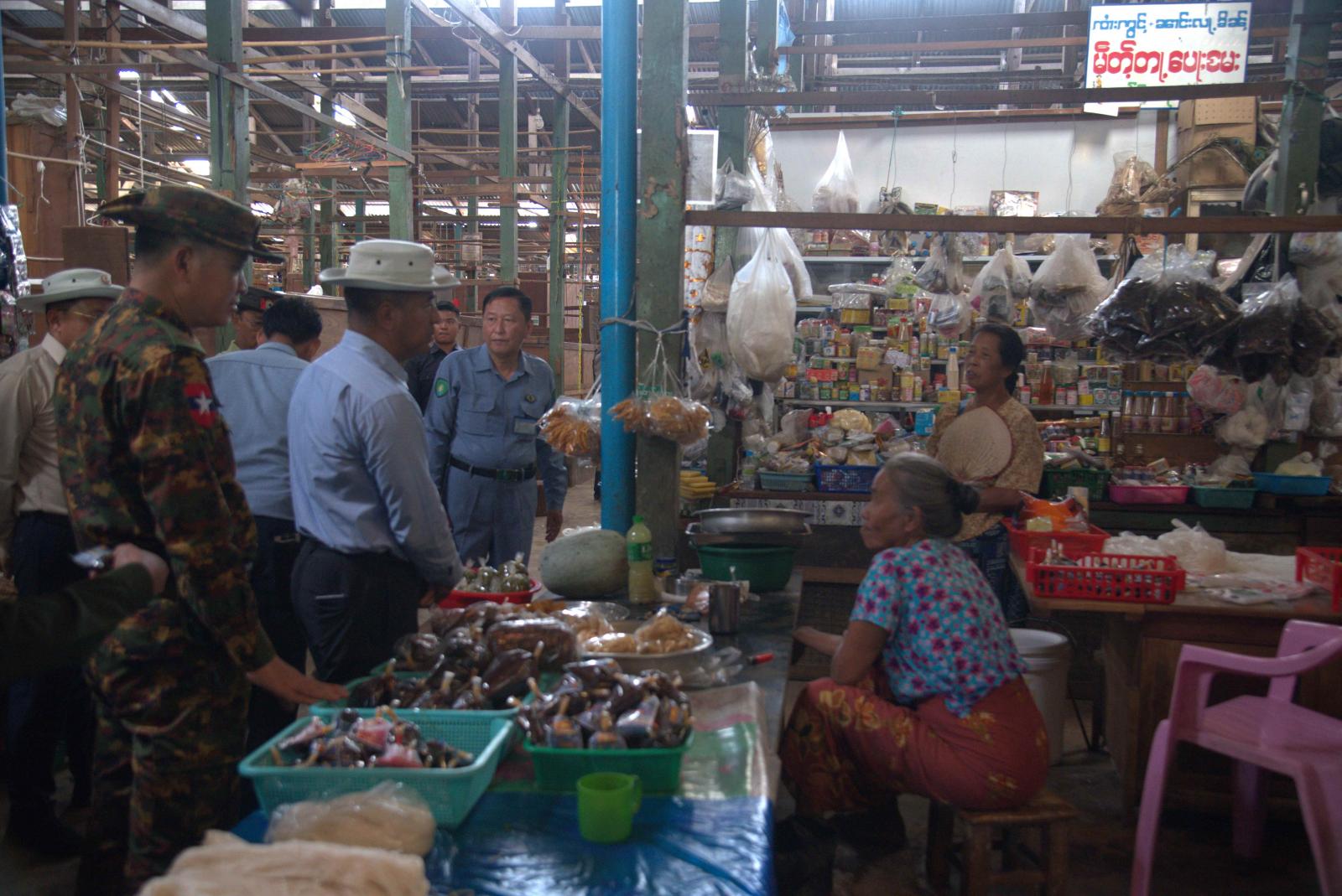 ယင်းနောက် ကျောက်မဲမြို့ ကွန်ဖြူးရှပ် တရုတ်စာသင်ကျောင်း၌ ယာယီရုံးဖွင့်လှစ်ထားသည့် လူဝင်မှုကြီးကြပ်ရေးနှင့်ပြည်သူ့အင်အားဝန်ကြီးဌာနမှပြည်သူများအား ပန်းခင်းစီမံချက်(၃)ဖြင့် အိမ်ထောင်စု ဇယား၊ နိုင်ငံသားစိစစ်ရေးကတ်ပြားဆောင်ရွက်ပေးနေမှုကို ကြည့်ရှုအားပေးပြီး ဆောက်လုပ်ရေးဦးစီးဌာနမှ ပျက်စီးသွားသည့် ဧည့်ရိပ်သာသို့သွားရောက် ကြည့်ရှု၍ လိုအပ်သည်များကို တာဝန်ရှိသူ များအားဖြည့်စွက်မှာကြားခဲ့ပြီး ကျောက်မဲမြို့ ဗဟိုစျေးသို့သွားရောက်ကာ စျေးရောင်းချနေသော ပြည်သူများအား ရင်းရင်းနှီးနှီးနှုတ်စကားပြောကြား၍ စျေးအတွင်းလှည့်လည်ကြည့်ရှု ခဲ့ကြကြောင်း သိရသည်။