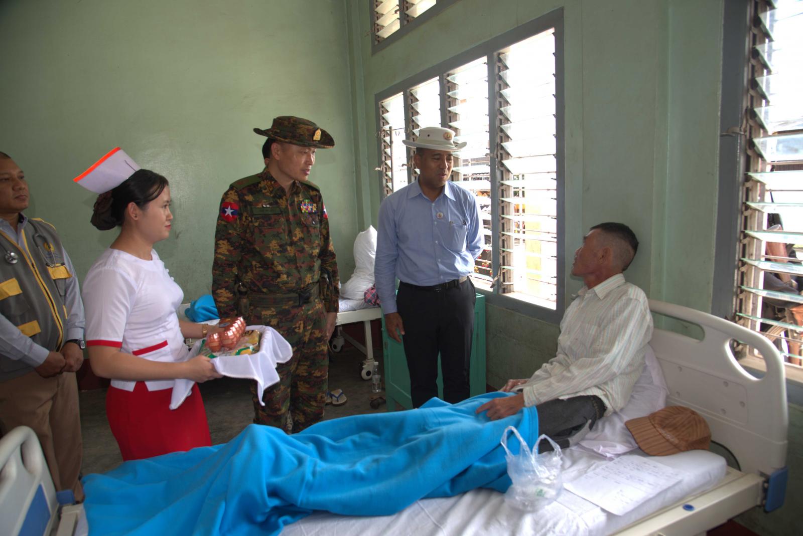 ထိုမှတစ်ဆင့် ပြည်နယ်ဝန်ကြီးချုပ်နှင့်တာဝန်ရှိသူများသည် ကျောက်မဲခရိုင်အထွေထွေအုပ်ချုပ်ရေးဦးစီးဌာနရုံးတွင် ရှေ့တန်းရောက်တပ်မတော်သားများအတွက် စားသောက်ဖွယ်ရာ ပစ္စည်းများကို ပြည်နယ်ဝန်ကြီးချုပ်ဦးအောင်အောင်၊ ကာကွယ်ရေးဝန်ကြီးဌာနအမှတ်(၂) စစ်ဆင်ရေး အထူးအဖွဲ့မှူးဗိုလ်ချုပ် ဇော်မင်းလတ်တို့ကပေးအပ်ရာ တာဝန်ရှိသူများမှ လက်ခံရယူကြသည်။