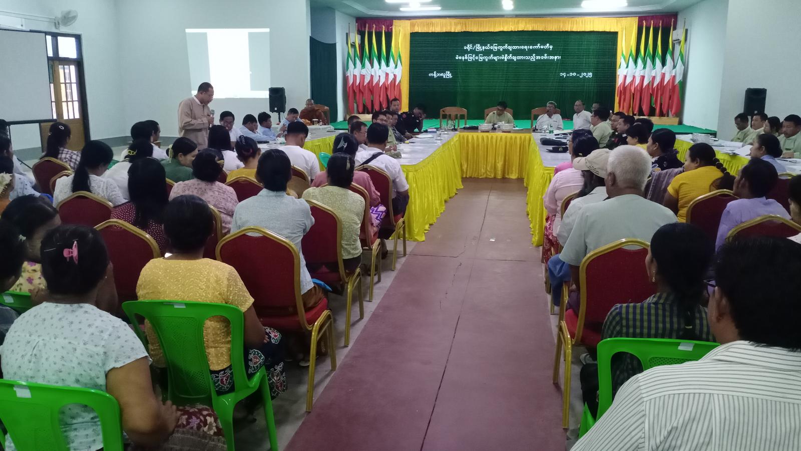 ရှေးဦးစွာ အမှတ်( ၃)ရပ်ကွက် သာသနာ့အလင်းရောင်ကျောင်းတိုက် ဦးစီးပဓာန နာယက ဆရာတော်(ငါးရာ့ငါးဆယ်ဆရာတော်) ဦးဝါသဝက ဩဝါဒစကားမိန့်ကြားပြီး ခရိုင်စီမံခန့်ခွဲရေး နှင့်အုပ်ချုပ်ရေးကော်မတီဥက္ကဋ္ဌ မြေကွက်ချထားရေးကော်မတီဥက္ကဋ္ဌ ဦးစောထွန်းဦးက မြေယာဖော် ထုတ်ရေးနှင့်မြေကွက်များချထားနိုင်ရေး ဆောင်ရွက်ခဲ့မှုအခြေအနေများကို ရှင်းလင်း ပြောကြားသည်။ ဆက်လက်၍ ကန့်ဘလူမြို့နယ် ကြေးတိုင်နှင့်မြေစာရင်းဦးစီးဌာန ဦးစီးအရာရှိ မြေကွက်ဖော်ထုတ်ရေး လုပ်ငန်းကော်မတီ အတွင်းရေးမှူး ဦးခင်ဇော်က မြေကွက်ဖော်ထုတ်ခဲ့မှုနှင့်ပတ်သက်၍ Power Point ဖြင့် ရှင်းလင်းတင်ပြသည်။ ထို့နောက် တာဝန်ရှိသူများက မဲစနစ်ဖြင့် တစ်ဦးချင်းမဲနှိုက်စေကာ ပေါက်မဲ မြေကွက်အလိုက်ချထားပေးမည် ဖြစ်ကြောင်း သိရသည်။