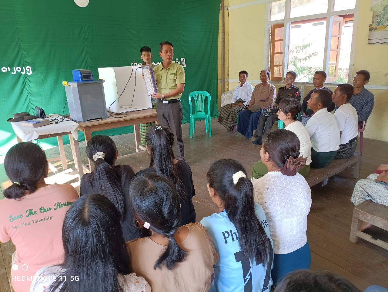ဦးစွာ မြို့နယ်စီမံခန့်ခွဲရေးနှင့်အုပ်ချုပ်ရေးကော်မတီဥက္ကဋ္ဌ ဦးအာကာတင်ဦးက ၂၀၂၅ ခုနှစ်၊ ပါတီစုံဒီမိုကရေစီအထွေထွေရွေးကောက်ပွဲ အောင်မြင်စွာကျင်းပနိုင်ရေးအတွက် မြန်မာအီလက်ထရောနစ်မဲပေးစက်(MEVM)ဆိုင်ရာ အချက်အလက်များနှင့်အသုံးပြုခြင်း ရည်ရွယ်ချက်များကို အသေးစိတ်ရှင်းလင်းပြောကြားသည်။ ထို့နောက် မြို့နယ်ရွေးကောက်ပွဲကော်မရှင်အဖွဲ့ခွဲဥက္ကဋ္ဌ ဦးနှစ်သစ်ကူးမှ မဲပေးစက်အသုံးပြုကိုင်တွယ်နည်းကို ရှင်းလင်းပြောကြားပြီး တက်ရောက်လာသူများက မြန်မာအီလက်ထရောနစ်မဲပေးစက်အသုံးပြုနည်း လက်တွေ့သရုပ်ပြစမ်းသပ်မဲပေးကြသည်။