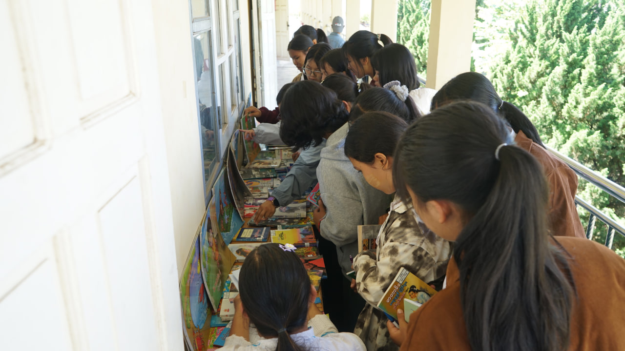 ထို့နောက် ပြန်ကြားရေးနှင့် ပြည်သူ့ဆက်ဆံရေးဦးစီးဌာန၊ ပအိုဝ်းကိုယ်ပိုင်အုပ်ချုပ်ခွင့်ရဒေသအဆင့်ရုံးမှ ခင်းကျင်းပြသထားသည့် သုတ၊ ရသစာအုပ်စာစောင်များကို တက်ရောက်လာသည့် ကျောင်းသား၊ ကျောင်းသူများက စိတ်ပါဝင်စားစွာ လေ့လာကြည့်ရှုခဲ့ကြပြီး မိမိတို့ကြိုက်နှစ်သက်သည့် သုတ၊ ရသစာအုပ်စာစောင်များအား ဖတ်ရှုမှတ်သားလေ့လာခဲ့ကြကြောင်း သိရသည်။
