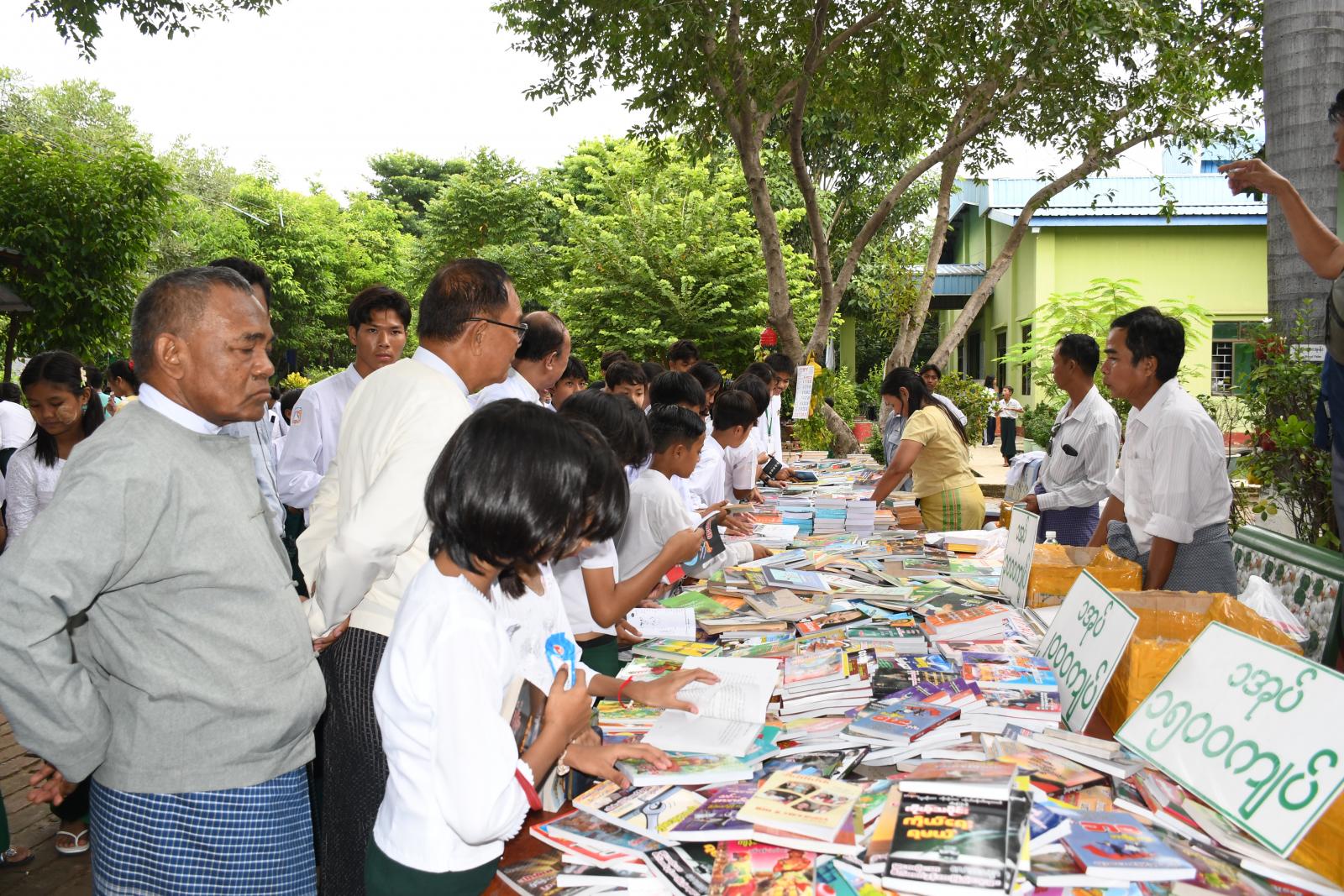 ယင်းနောက် မန္တလေးတိုင်းဒေသကြီး အစိုးရအဖွဲ့လူမှုရေးရာဝန်ကြီး ဦးအောင်ကျော်မိုးမှ အဖွင့်အမှာစကားပြောကြားခဲ့ပြီး ကျောင်းသား၊ ကျောင်းသူလေးများမှ ရိုးရာတေးသီချင်းများဖြင့် ကပြဖျော်ဖြေတင်ဆက်ခဲ့ကြသည်။ ဆက်လက်၍ ကျောင်းစာကြည့်တိုက်များ ဖွံ့ဖြိုးတိုးတက်ရေးနှင့်စာဖတ်ရှိန်မြှင့်တင်ရေးပွဲတော်အတွက် အလှူငွေများလှူဒါန်းခဲ့သော အလှူရှင်များအား လူမှုရေးရာဝန်ကြီး ဦးအောင်ကျော်မိုးမှ ဂုဏ်ပြုမှတ်တမ်းလွှာများပေးအပ်ခဲ့ပြီး တိုင်းဒေသကြီး ပြန်ကြားရေးနှင့်ပြည်သူ့ဆက်ဆံရေးဦးစီးဌာန ညွှန်ကြားရေးမှူး ဒေါ်ဝေဝေဖြိုးနှင့် စာကြည့်တိုက်များဖောင်ဒေးရှင်းဥက္ကဋ္ဌ ဦးသောင်းနိုင်တို့မှ ကျောင်းစာကြည့်တိုက်အတွက် စာအုပ်၊ စာစောင်များ ပေးအပ်လှူဒါန်းခဲ့သည်။