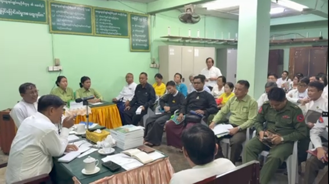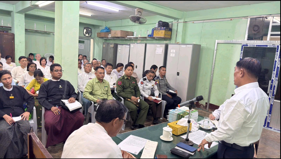 ထို့နောက် မြို့နယ်စီမံခန့်ခွဲရေးနှင့်အုပ်ချုပ်ရေးကော်မတီခေတ္တဥက္ကဋ္ဌ ဦးသိန်းလင်းအောင်က ဒေသဆိုင်ရာအချက်အလက်များ၊ ပညာရေး၊ ကျန်းမာရေးဆိုင်ရာ လုပ်ငန်းဆောင်ရွက်ချက်များ၊ အခြေခံမဲဆန္ဒရှင်စာရင်းများ အသိပေးကြေငြာထားမှု အခြေအနေများ၊ မဲရုံများလျာထား သတ်မှတ်ထားရှိမှု အခြေအနေများ၊ ပါတီစုံဒီမိုကရေစီအထွေထွေရွေးကောက်ပွဲ အောင်မြင်စွာကျင်းပပြီးစီးနိုင်ရေးအတွက် ကြိုတင်ပြင်ဆင်ဆောင်ရွက်ထားရှိမှုအခြေအနေများ၊ မြို့နယ်အတွင်းရှိ ဌာနဆိုင်ရာဝန်ထမ်းအဖွဲ့အစည်းများအားလုံး ဆန္ဒမဲပေးပိုင်ခွင့်ရရှိရေး ဆောင်ရွက်ထားရှိမှုအခြေအနေများ၊ ယာယီနေရပ်စွန့်ခွာပြည်သူများအား ဆန္ဒမဲပေးပိုင်ခွင့် မဆုံးရှုံးစေရေးအတွက် ဆောင်ရွက်ပေးလျက်ရှိသည့် အခြေအနေများ၊ မဲစာရင်းများတွင် ပါဝင်နိုင်ရေးအတွက် ရပ်ကွက်များအတွင်း နေ့စဉ်ကြေညာ ဆောင်ရွက်နေရှိမှုအခြေအနေများ၊ မဲစာရင်းများ ပြည့်စုံမှန်ကန်စေရေးအတွက် Spot Check ဖြင့် စိစစ်ဆောင်ရွက်ပေးလျက်ရှိသည့် အခြေအနေများကို ရှင်းလင်းတင်ပြပြီးနောက် မြို့နယ်ရွေးကောက်ပွဲကော်မရှင်အဖွဲ့ခွဲအတွင်းရေးမှူး ဒေါ်ငုဝါစိုးနှင့်အစည်းအဝေးတက်ရောက်လာကြသူများက ရွေးကောက်ပွဲ အောင်မြင်စွာ ကျင်းပနိုင်ရေးအတွက် ဆောင်ရွက်နေမှုများကိုရှင်းလင်းတင်ပြသည်။